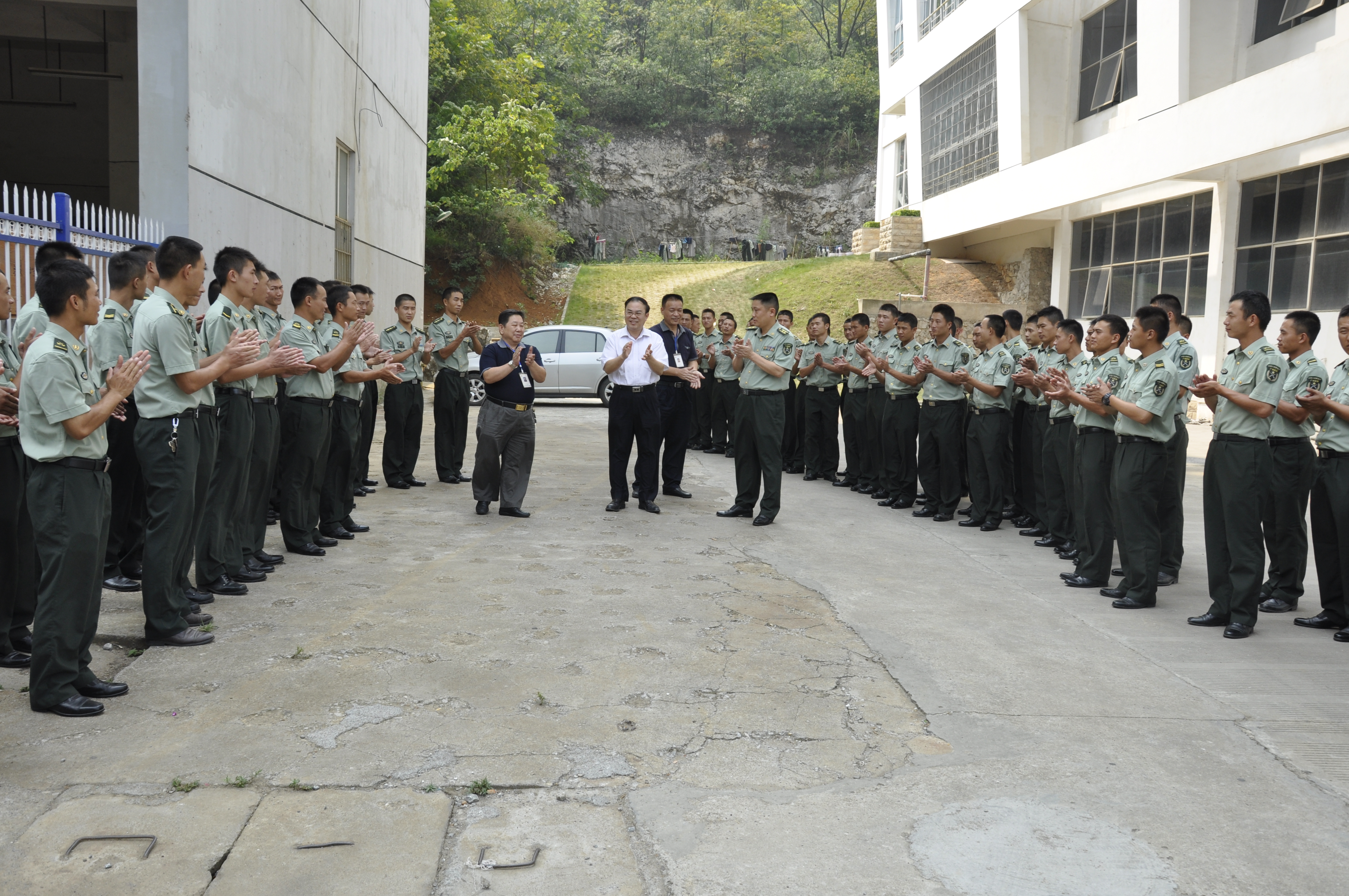 9月22日下午,学院党委书记朱伟才、院长助理敬志轩等领导,在学生工作处处长唐冬雷、武装部部长莫帮雄的陪同下,与承训部队领导一起,亲切看望并慰问正在军训的2013级新生。