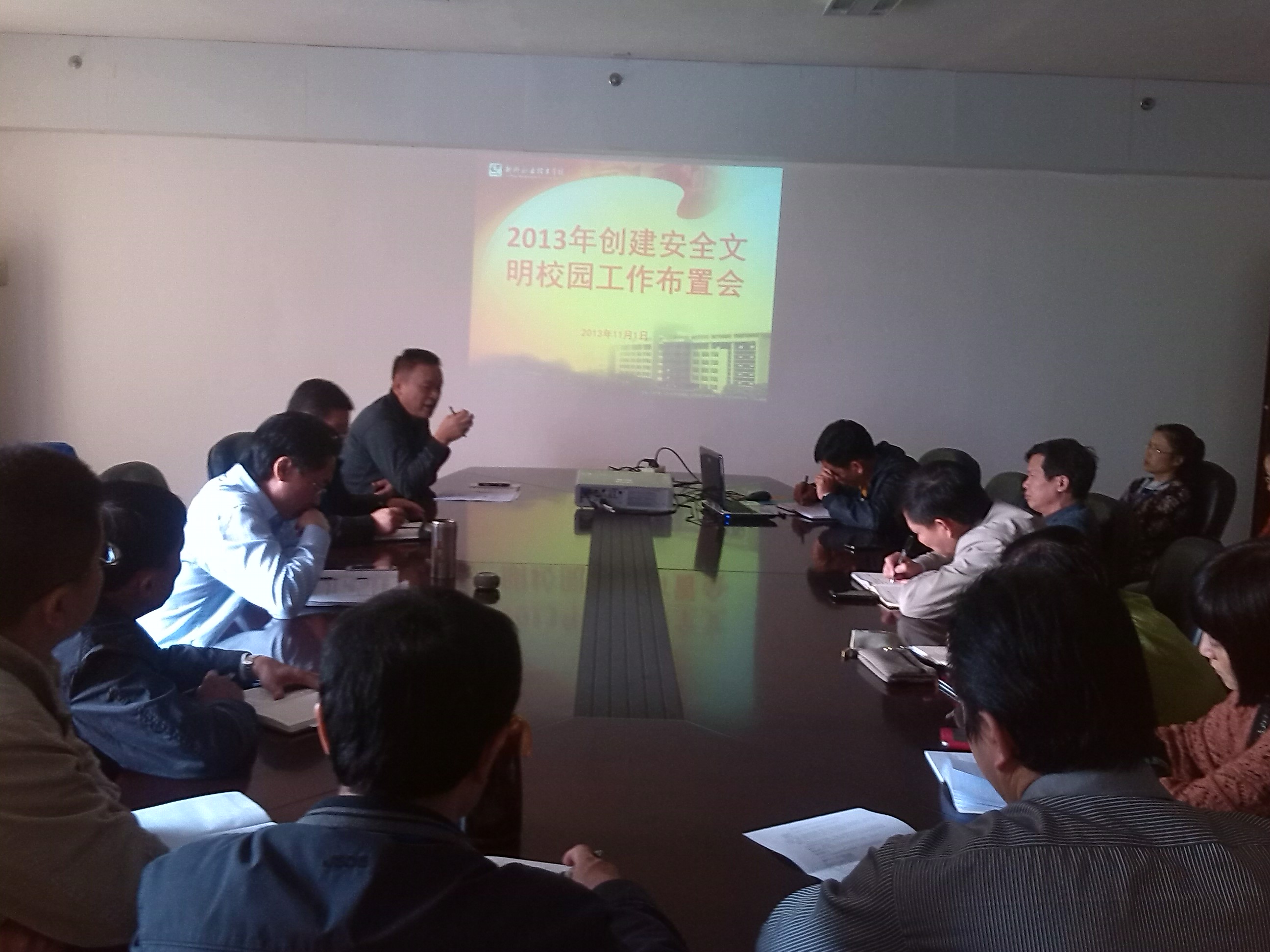 2013年11月1日上午,学院在行政大楼303会议室召开了2013年安全文明校园工作布置会,学院党委副书记阳旭、院长助理敬志轩及各部门安全工作负责人近30人参会,会议由保卫处副处长钟旭主持。