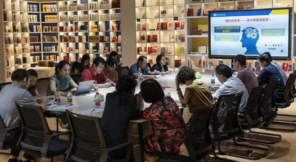 就“大家想把书院建成什么样的书院?”、“对书院功能版块设计和具体活动有什么建议?”、“如何导入校内外优质资源进入书院?”,与会人员纷纷畅谈交流,结合所在部门工作实际为书院建设出谋划策,带来了开阔的思路和结合校内外不同受众需求的具体建议。