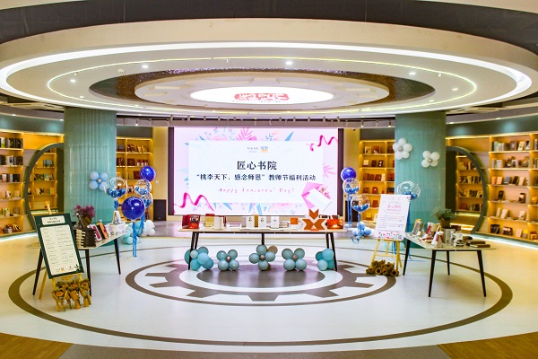 新闻网消息(文、图/党委宣传部  郭馨元)金色九月,丹桂飘香,祝福飞扬。为庆祝全国第37个教师节,我校匠心书院特别策划了“桃李天下,感念师恩”教师节福利活动,为师生定制购书专属福利,将孩子们的祝福温暖送达,书院处处洋溢着温馨的节日氛围。