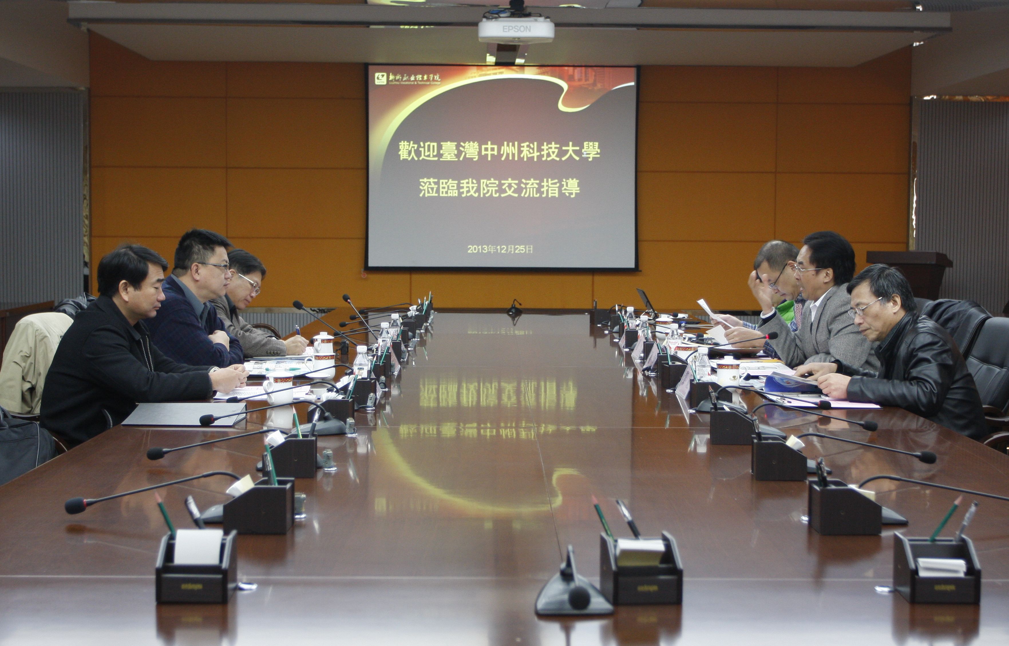 12月25日上午,台湾中州科技大学董事柴云清先生、终身教育处处长谢清隆先生、研究发展处研发长郑朝旭先生一行到我院参访。