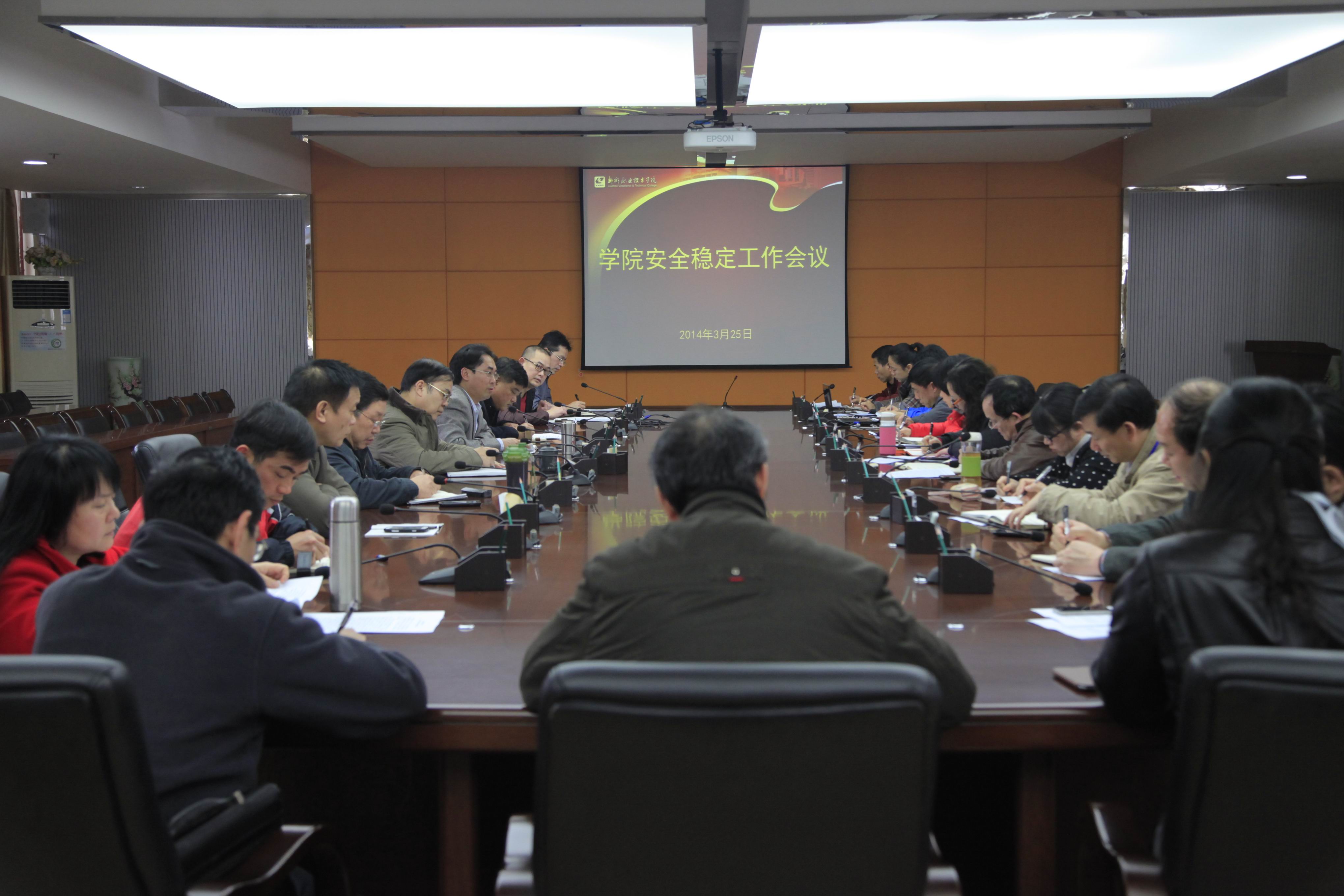 2014年3月25日下午,我院在行政办公楼300会议室召开了2014年春季学期安全稳定工作会议,学院党委书记朱伟才、副书记阳旭、院长助理敬志轩以及其他安全稳工作领导小组成员共25人参加会议。