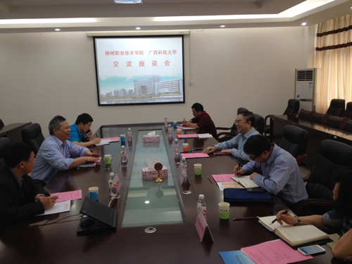 为了更好地适应我区产业结构调整和产业技术升级对高端技术型人才的需求,适应我区高等职业教育教学改革的新要求,借鉴、依托本科院校的人才培养优势和人才培养通道,积极探索现代职业教育理念下的学院发展新模式,2014年4月14日下午,学院党委书记朱伟才率队到广西科技大学,就两院合作办学等事宜进行访问,学院副院长林若森、党委办公室(学院办公室、国际交流处)主任瞿凡、教务与实训管理处处长鞠红霞等随行参访。