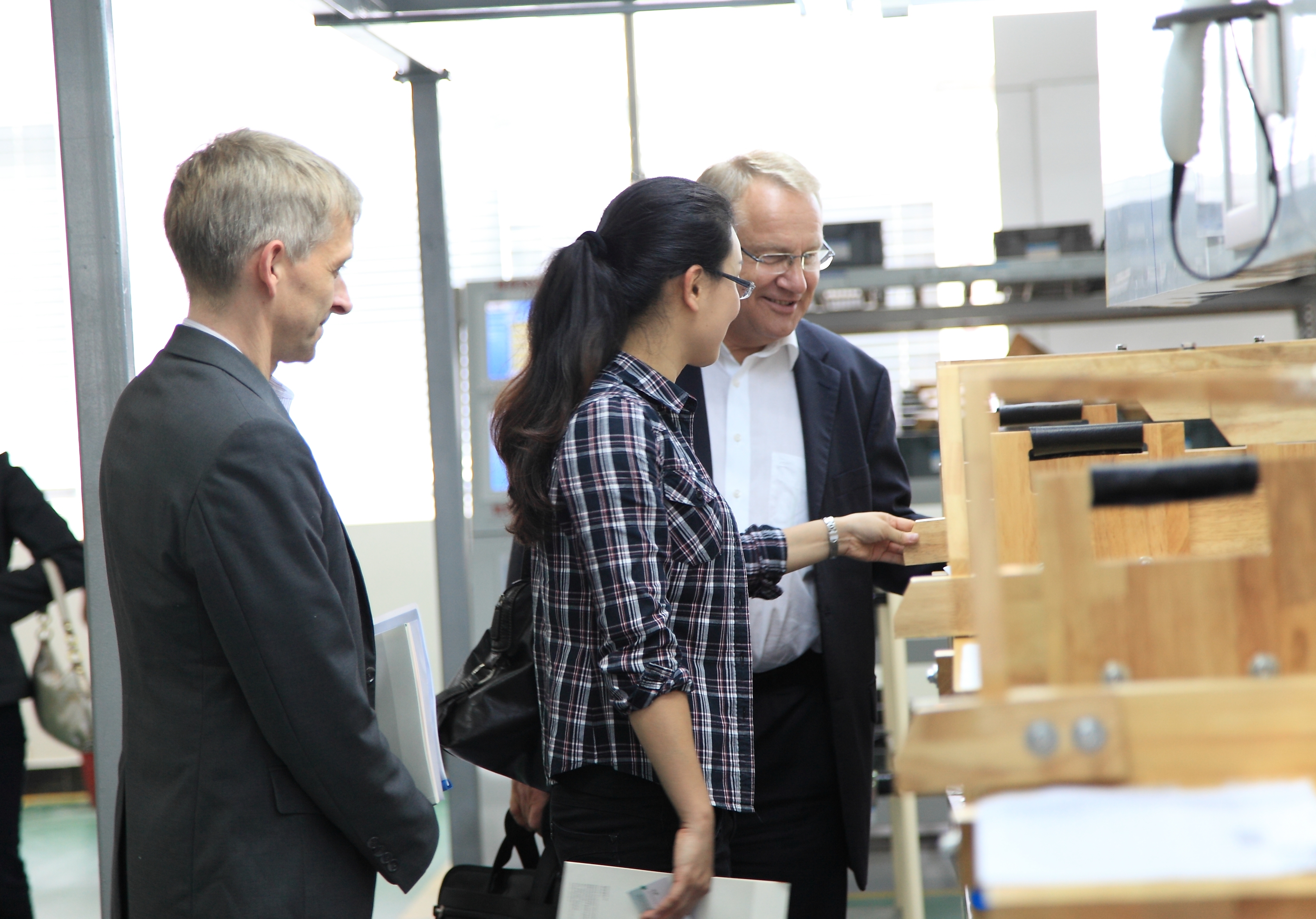随后在办公楼300会议室,中德双方就合作形式进行了深入交流。林副院长希望,能把先进的教育模式和方法引入柳州、引入柳职院,尽快地学习、吸收,发展柳州市的职业教育;潘副局长向德国友人简要介绍了柳州市工业发展情况,建议能够依托柳职院现有的职业教育国际项目基础,重点遴选几个专业,开展师资培训,建立合适模式,确定范围、数量,甚至可以考虑邀请巴伐利亚州教育集团派技术专家、职业教育专家进行可行性论证,争取尽快实现项目合作;鞠副院长对洋森博士的再次来访表示欢迎,也感谢德国巴伐利亚州经济教育集团对我院办学成就的认可,期望能够在柳州市主导工业专业——汽车、机械等方面进行更深入、具体的职业教育合作,以推动柳州市职业教育向国际化发展。(文/党办 赵萃 图/朱敬民)