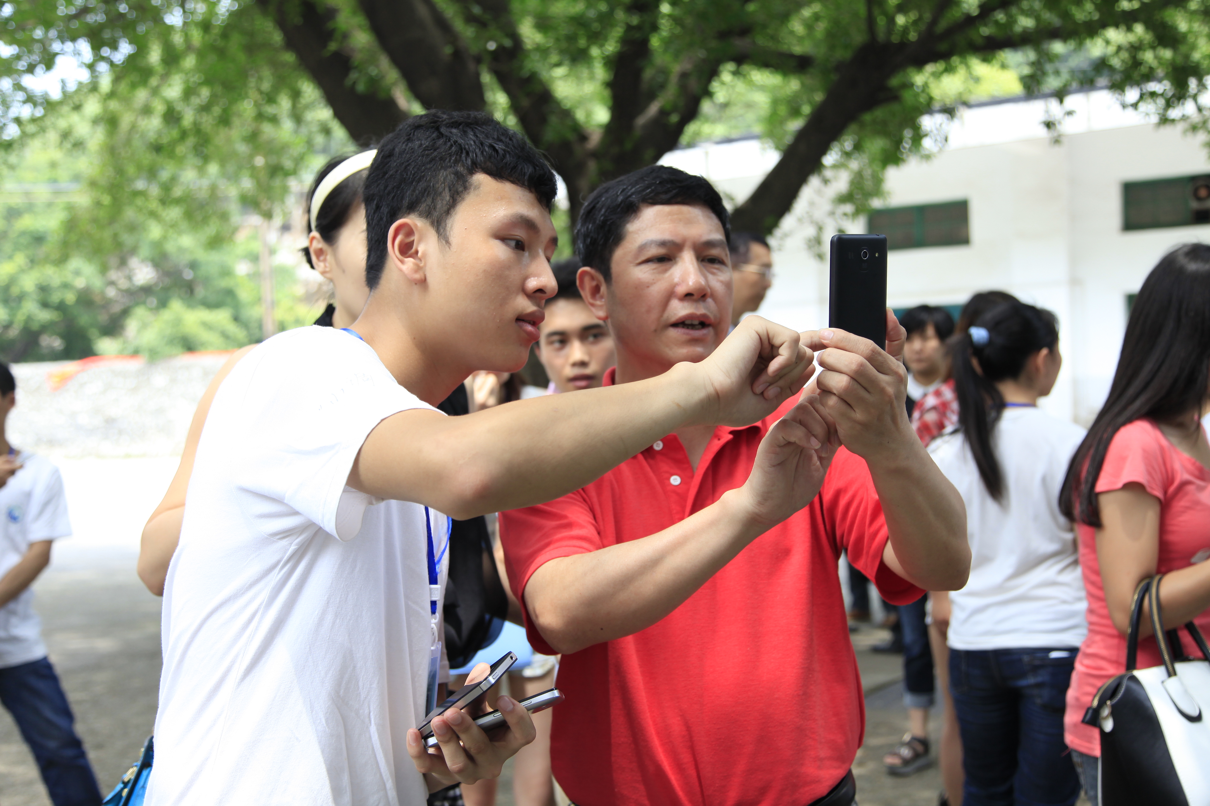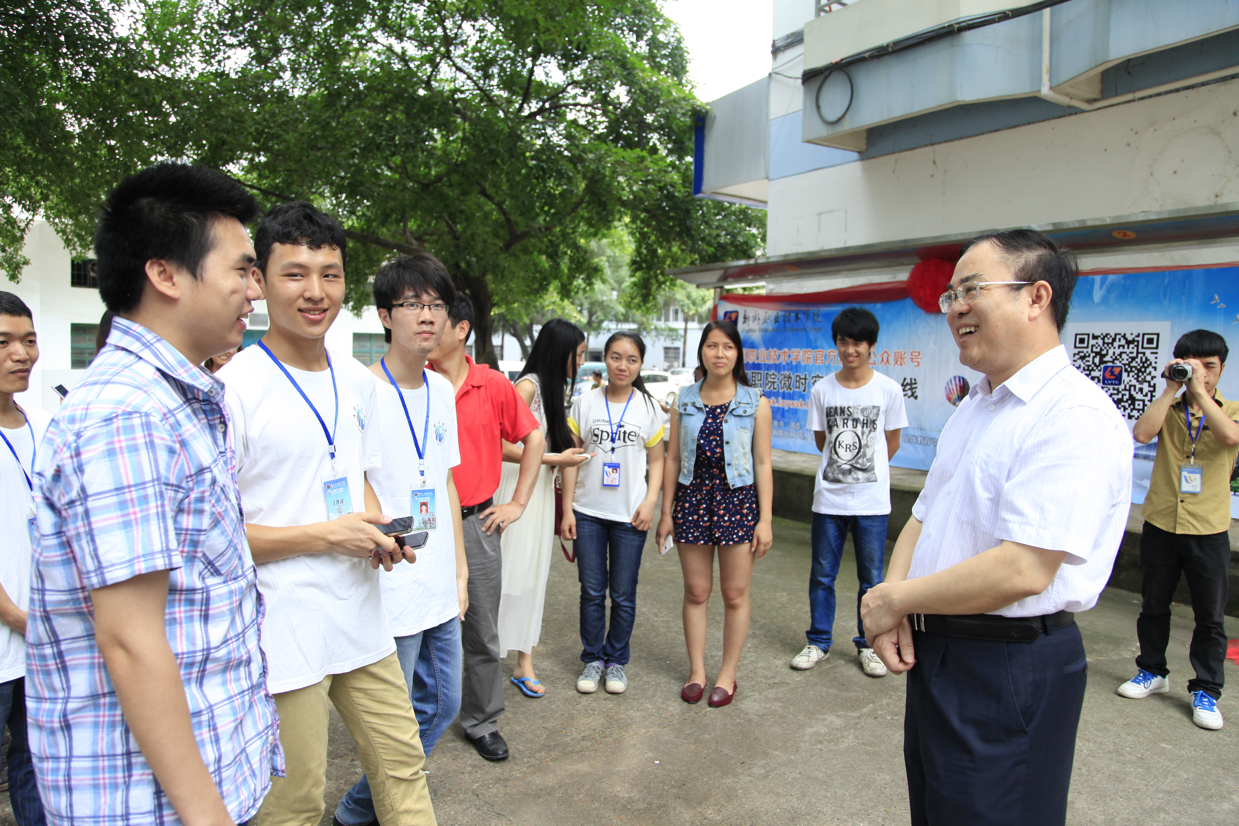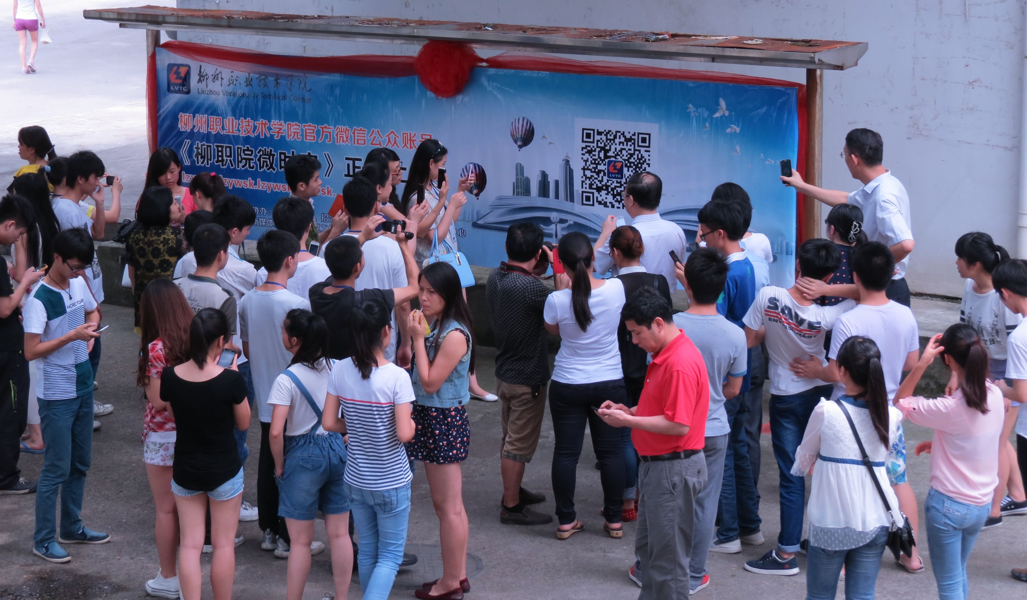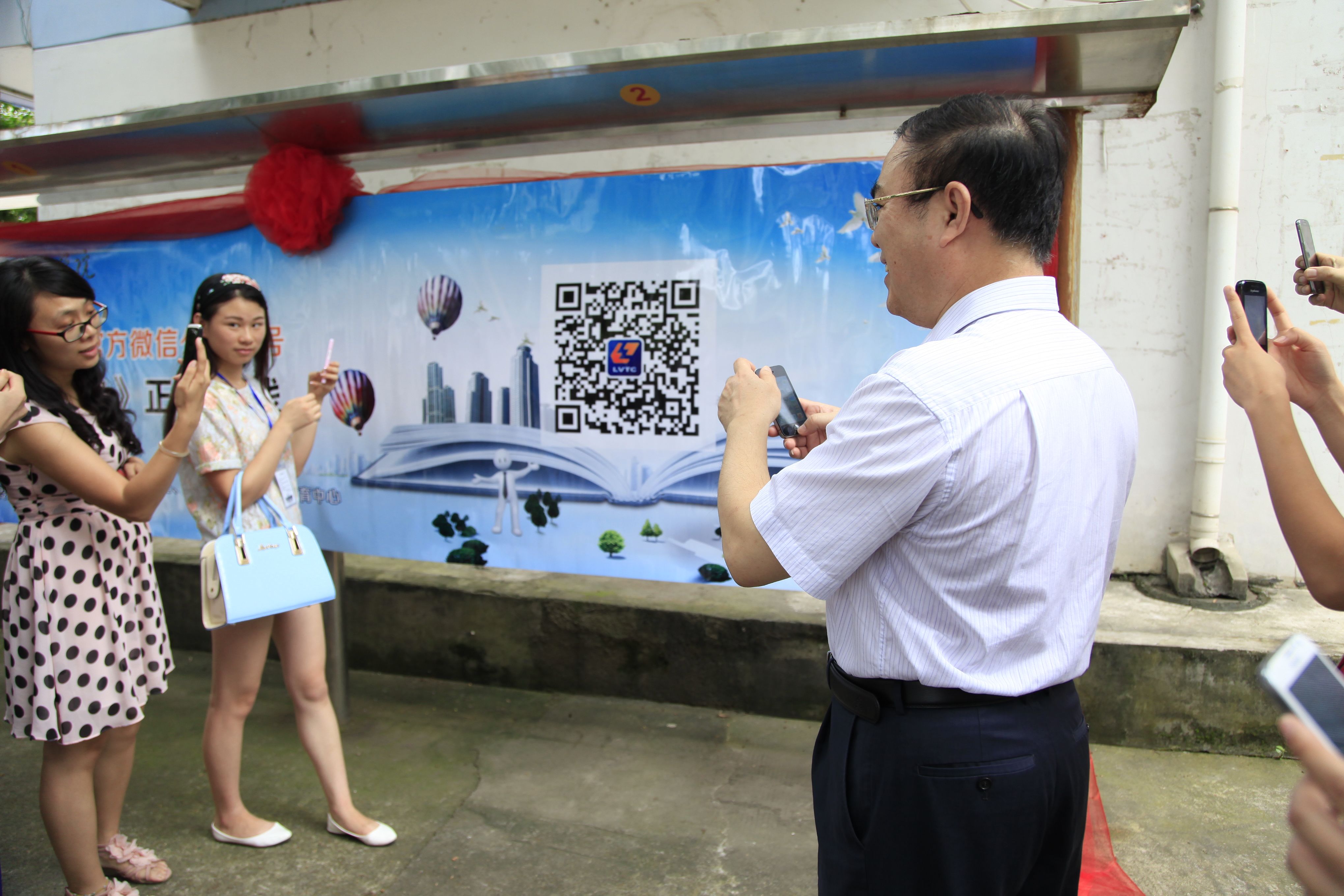 “我要来扫一扫!”、“别挡住我,我也要扫!”师生们纷纷拿出手机对着《柳职院微时空》二维码扫了起来,将揭幕仪式的氛围推向高潮。朱伟才书记还在现场与同学们交流起了微信的使用方法,更加激发了同学们关注《柳职院微时空》的强烈兴趣。