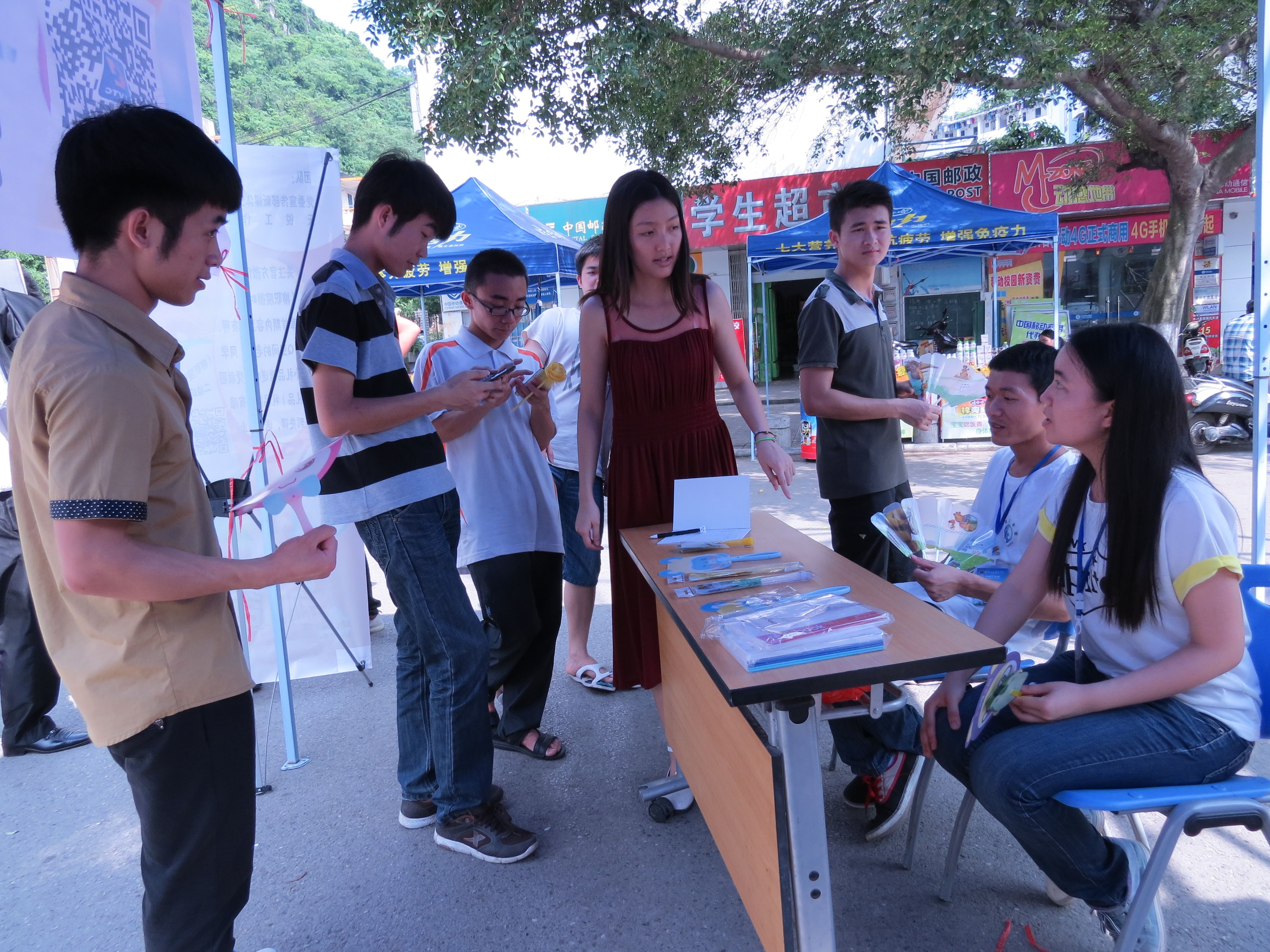 微号工作团队天锐工作室的同学们在开展“柳职院微时空”宣传推广活动