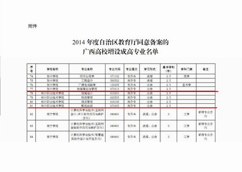 日前,从广西教育厅获悉,我院申报的“服装设计”、“物流管理”、“酒店管理” 、“影视动画”四个新专业已顺利通过评审,并列入我院2014年招生专业。至此,我院成人高等教育招生专业增至25个,专业设置涵盖数控技术、机电一体化技术、电子商务、行政管理、机械设计与制造、汽车检测与维修技术、旅游管理、学前教育等科类。