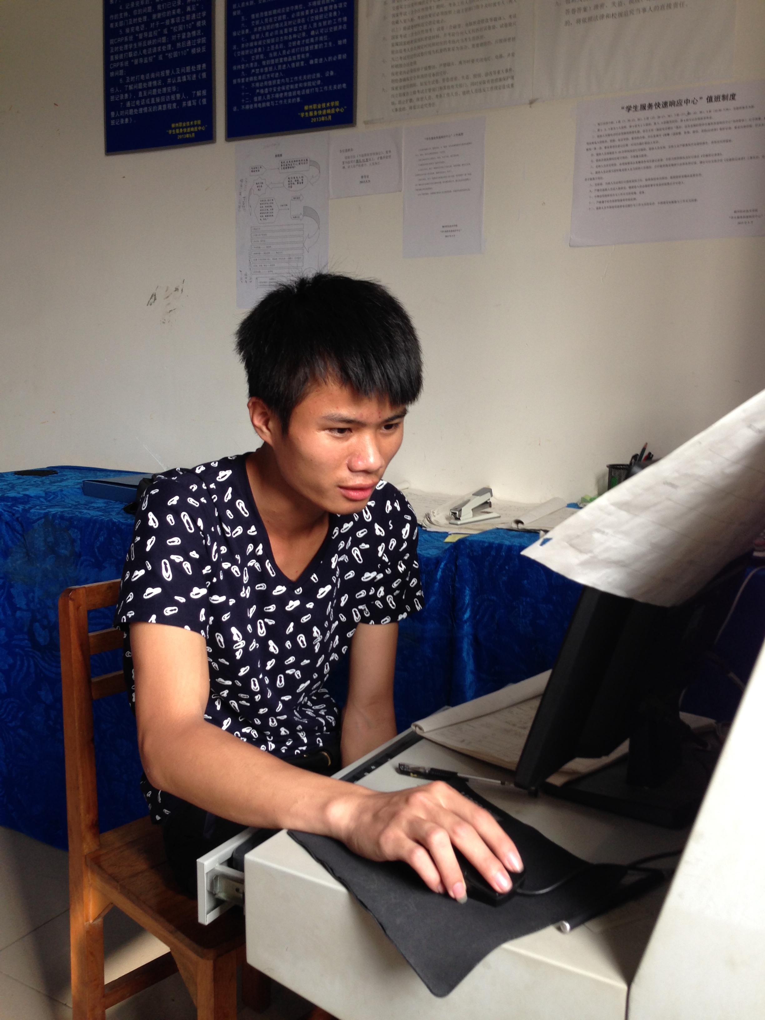 新闻网通讯(文、图/ 记者石玉丹) 2013年5月2日,一个名为“学生服务快速响应中心”24小时热线电话3156110在柳州职业技术学院正式开通,同时,30部免费拨打热线电话同步安装,遍布教学楼、学生宿舍、食堂、实训中心、体育馆等处,以方便学生拔打?!把窨焖傧煊χ行摹庇裳г憾降际壹喙?,安排学生24小时值守,以全天侯的服务,响应全校10491名在校生遇到的报警、报修、咨询、投诉、求助等事件。而今,热线开通一年了,一年来的运转情况如何?日前记者进行了走访。