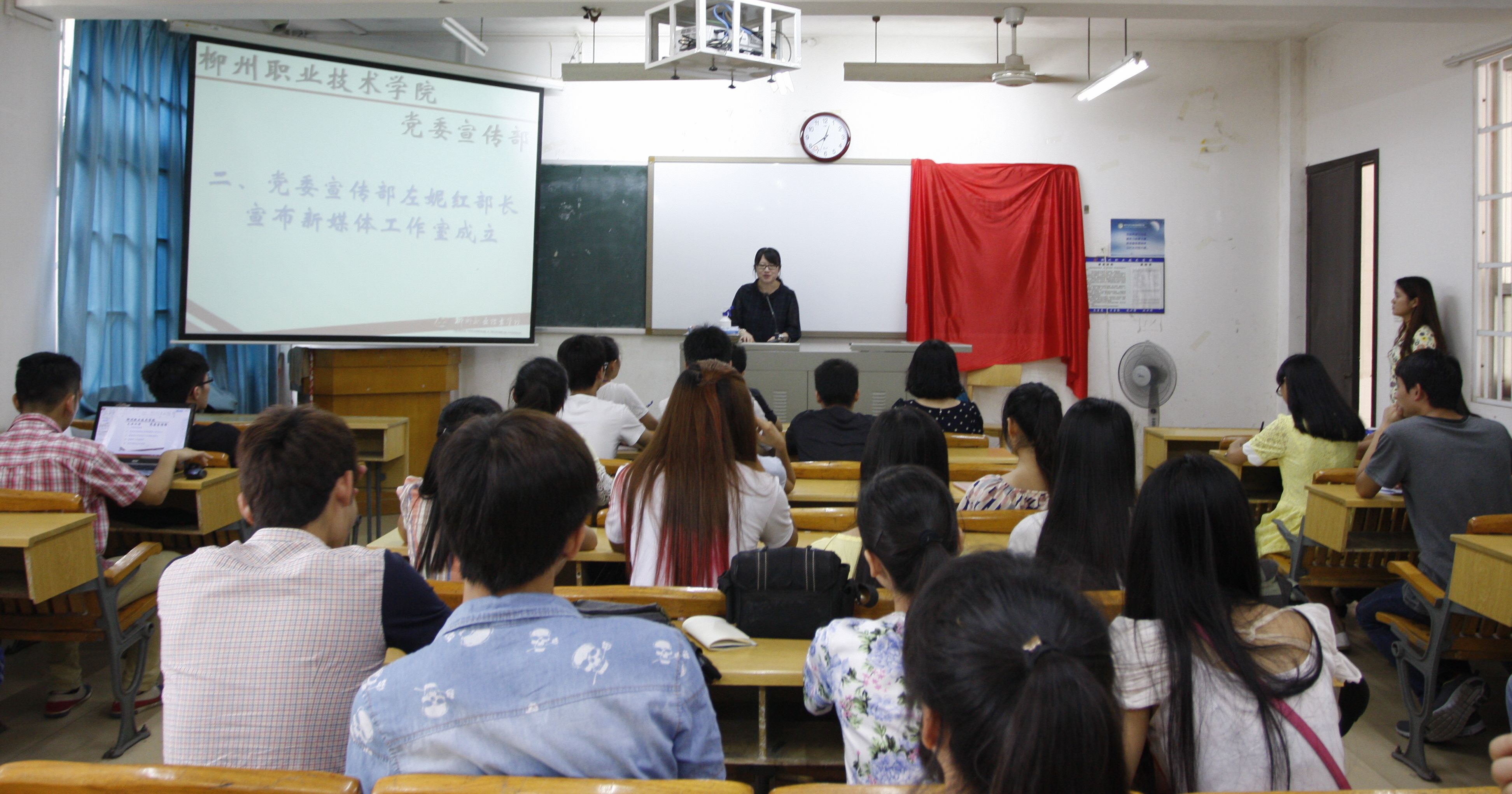 党委宣传部左妮红部长宣布柳州职业技术学院党委宣传部新媒体工作室正式成立