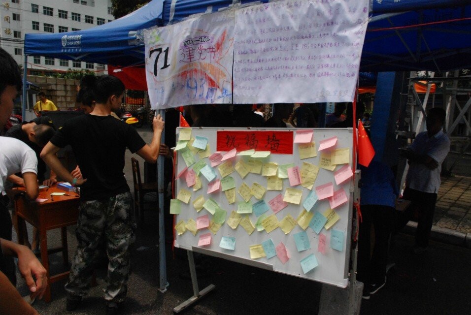 由现场参与活动的师生共同粘贴的爱国祝福墙