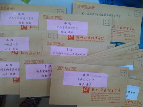编者按:不久前,学院组织各系部开展向学生家长及原所在高中寄送喜报工作。贸易与旅游管理系与电子信息工程系积极响应,快速行动,值得称赞。“感谢你们,正是你们精心的培养,给了我们彼此分享这份成功和喜悦的机会!”这一封封特殊的信件,信封里装着粉红的喜报,上面记载着学生本学期获得的各项荣誉,她们将陆续寄到学生父母和母校手中。希望更多的系部积极、及时推进本项工作,让家长和学生原来所就读的高中领导、老师们一起来分享那一份喜悦,并借此更多的了解和参与学院的人才培养工作。