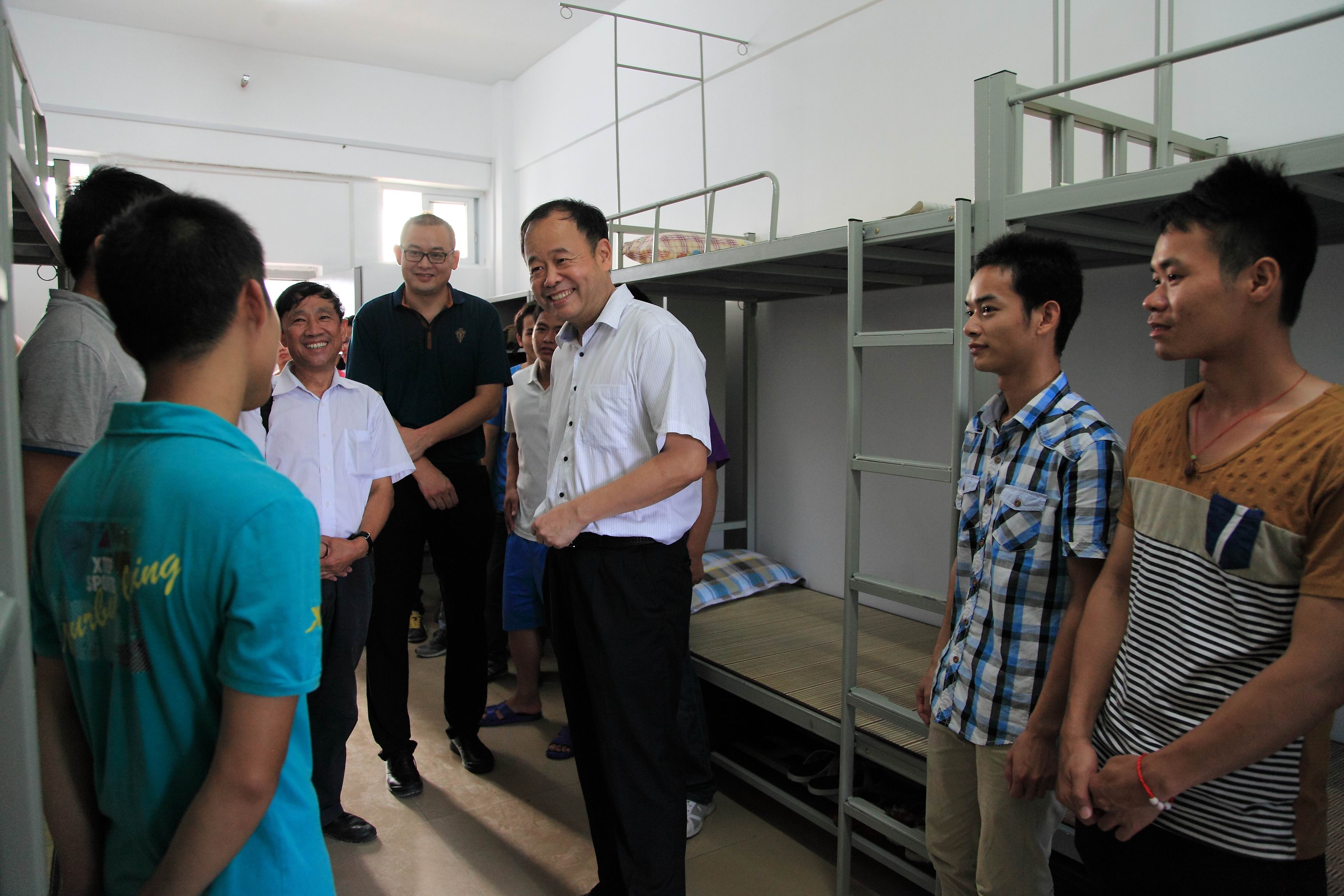 党委书记朱伟才、副书记阳旭到宿舍看望学生