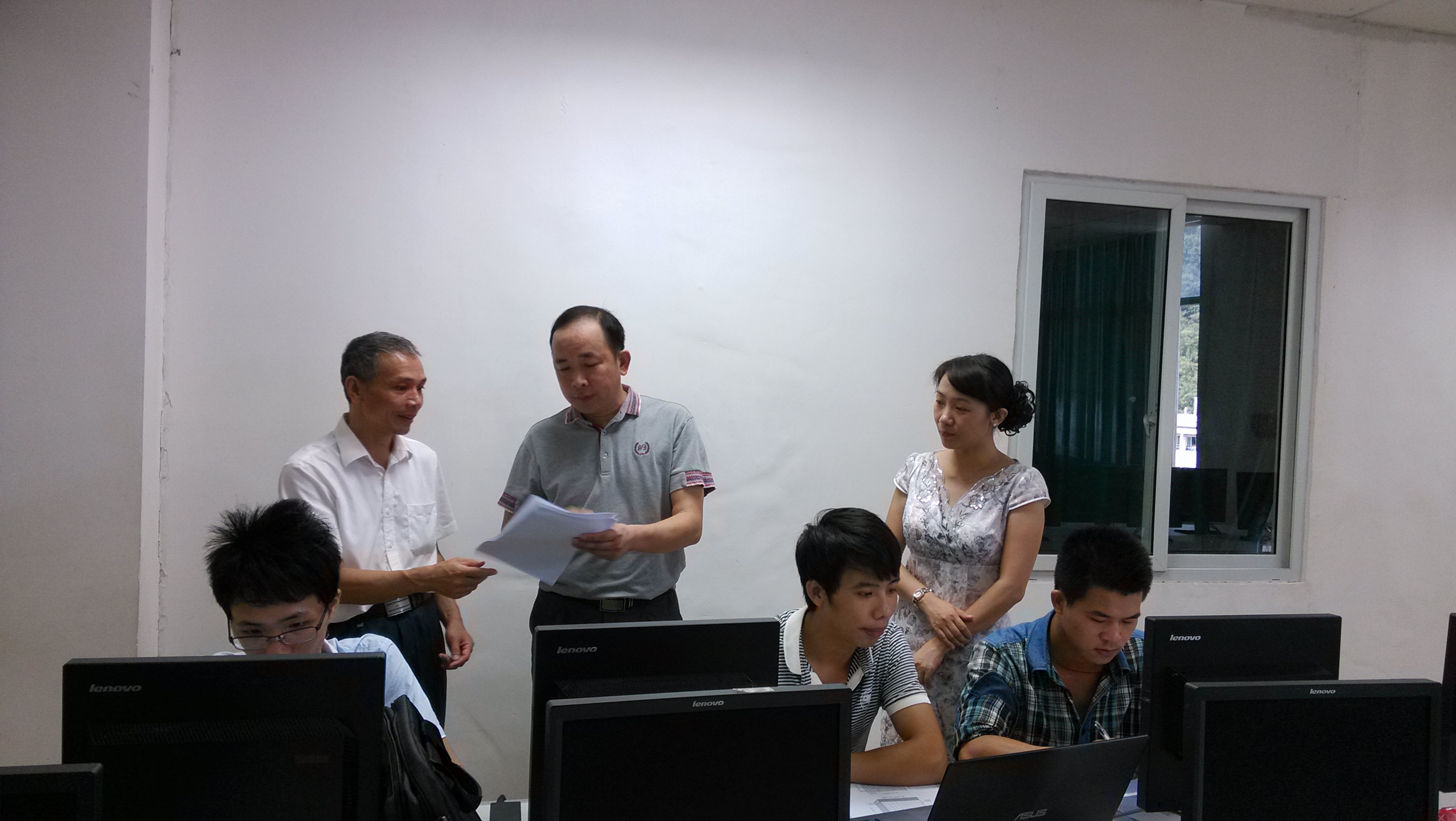 公共基础部副主任陈芳(后排右一)、李革(后排中)检查竞赛工作