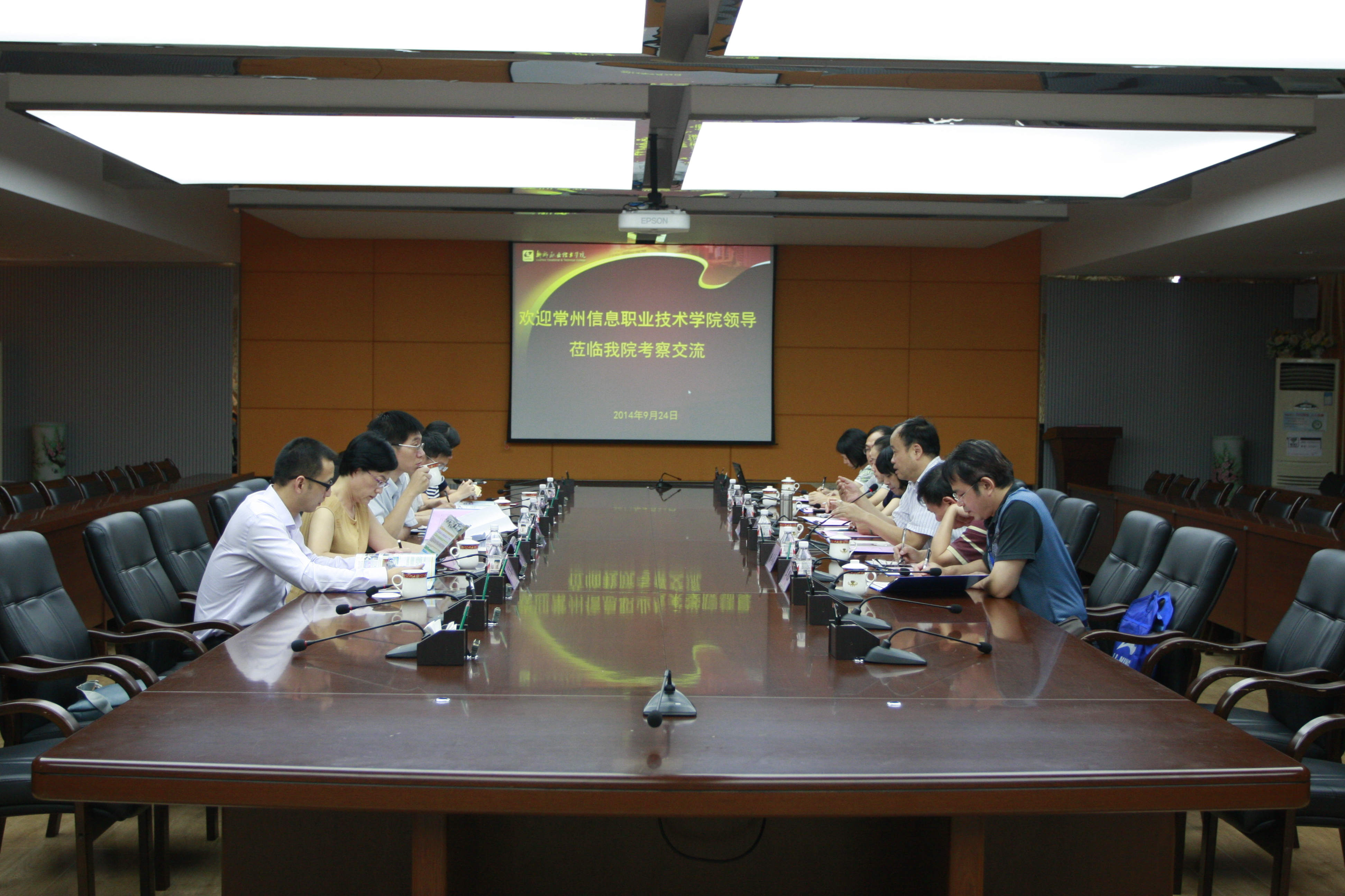 9月24日下午,常州信息职业技术学院院长王丹中、副院长费小平等一行6人到我院交流访问,学院院长石令明、副院长鞠红霞陪同参观了学院校内实训基地、“一站式”学生服务中心,之后在300会议室座谈交流,学生工作处、招生就业处、现代教育技术中心、国际交流处等部门有关领导参加了座谈。