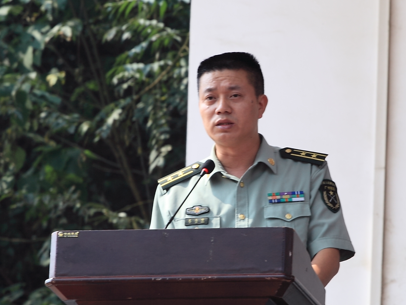 新生会操完毕,部队领导讲评了军训情况,阳副书记宣布荣获会操一、二、三等奖的名单和优秀教官名单。