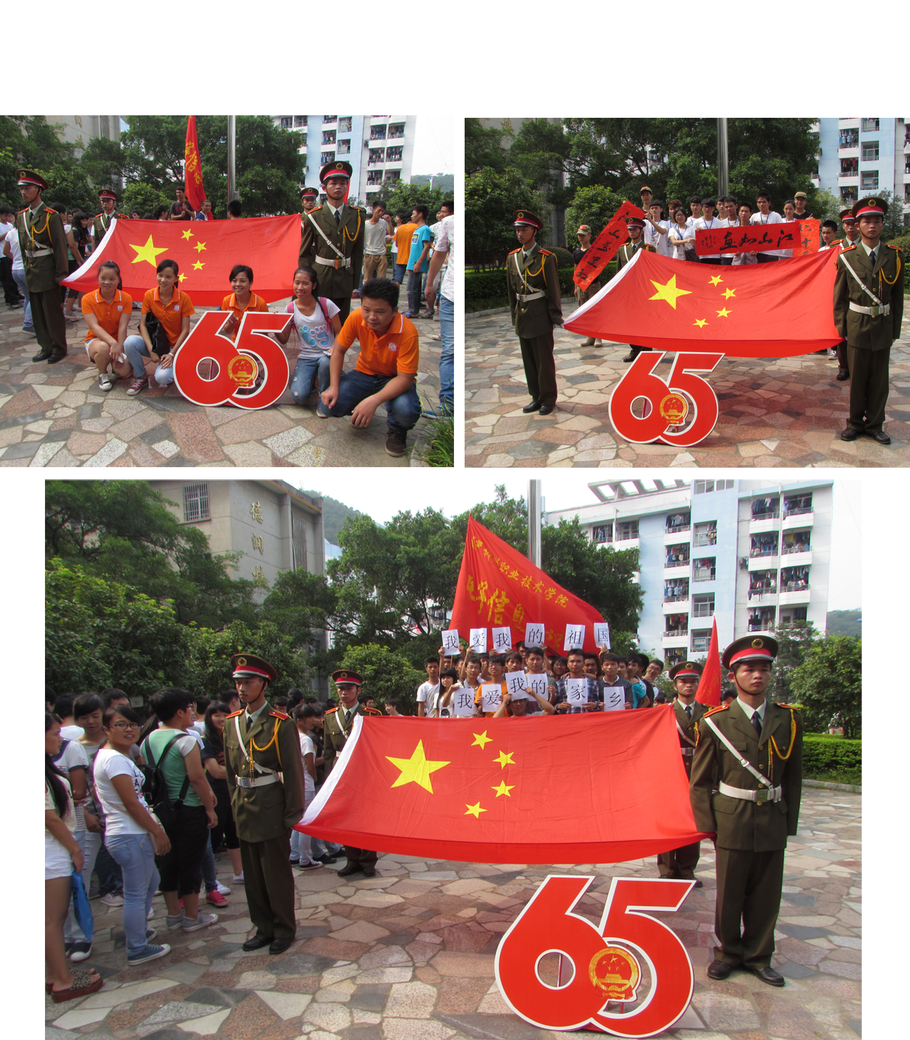 2014年9月30号,在庆祝中华人民共和国成立65周年之际,我国迎来首个法定“烈士纪念日”。当天上午9时30分,学院党委书记朱伟才和学工处、团委以及各系党总支、团支部师生代表一起,在博闻楼前国旗台下,举行隆重的“庆祝新中国65华诞,青春践行核心价值观”纪念烈士主题活动?;疃稍和盼靼?,活动也受到团市委、市文化局的关注。