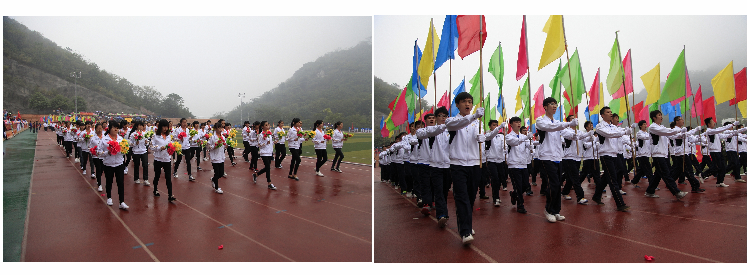 新闻网消息(记者石玉丹 摄影/朱敬民、杨世海、学院电视台)11月5日,尽管下着小雨,柳州职业技术学院田径场上参加第十七届运动会开幕式的师生们,心中都充满期待,期待赛事开场,期待运动会开幕。