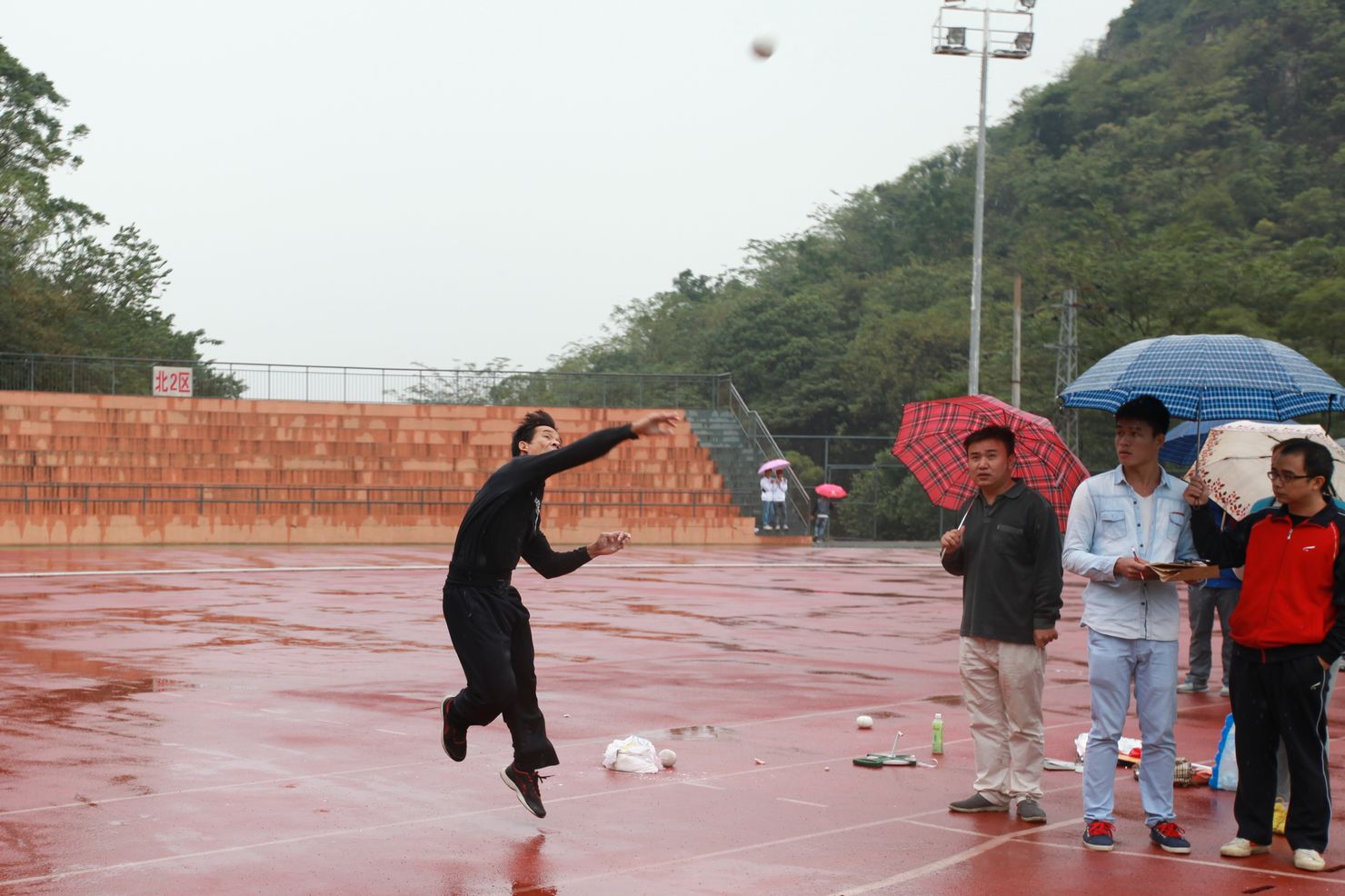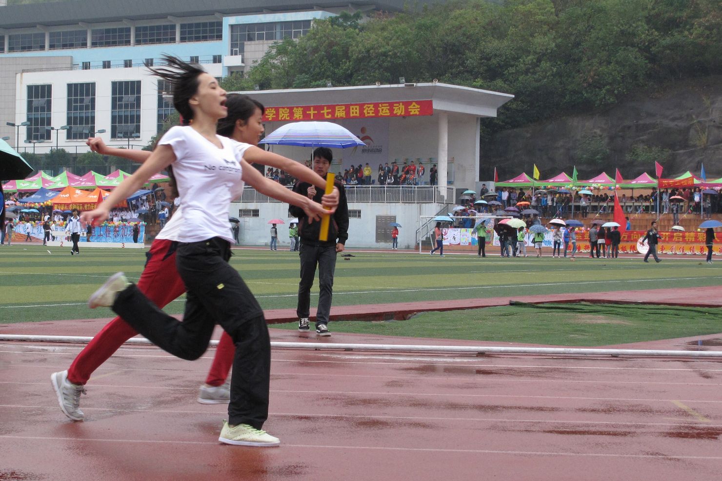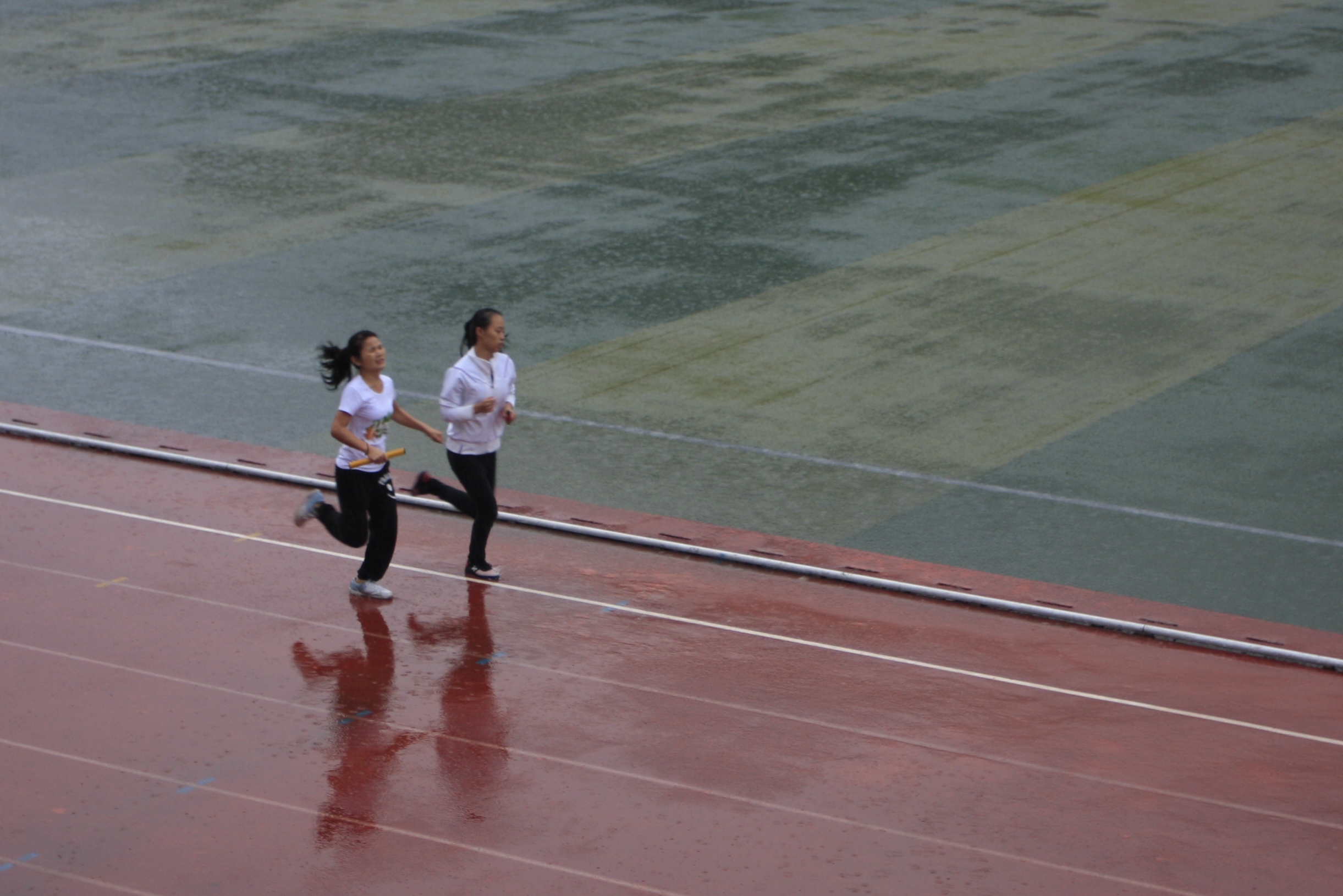 其中贸旅系啦啦队最赞,记者连续三天现场采访,全场喊得最响、最勤的就数他们,要是田径场有盖,怕是早就被嗨翻了N次。口号声一波接一波,这边稍停,那边又起。既是为运动员加油助威,又是啦啦队员们青春激情的一种释放或渲泻,小雨笼罩中的赛场变成了人声鼎沸的海洋!