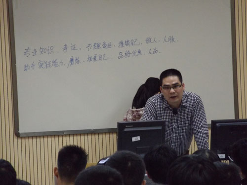 林聪,现任深圳电应普科技有限公司总经理。他的积极就业到成功创业的故事早已在学院的学子圈中广为流传,听说有林总的讲座,慕名前来的学生们早已把412教室坐满了。讲座中,林聪向同学们分享了他的积极就业到成功创业的宝贵经验;与同学们共同探讨如何设计合理的职业生涯规划,提出了什么是有效的学习方法。