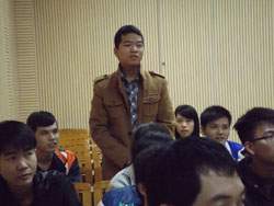 聆听完林聪学长的宣讲后,与会的同学们就自己在学习、就业中遇到的困惑和问题,踊跃提问。林聪也就同学们感兴趣的话题,如何定位自己,如何择业,如何从择业过渡到就业等问题一一给予了解答并展开讨论,现场气氛轻松活跃。