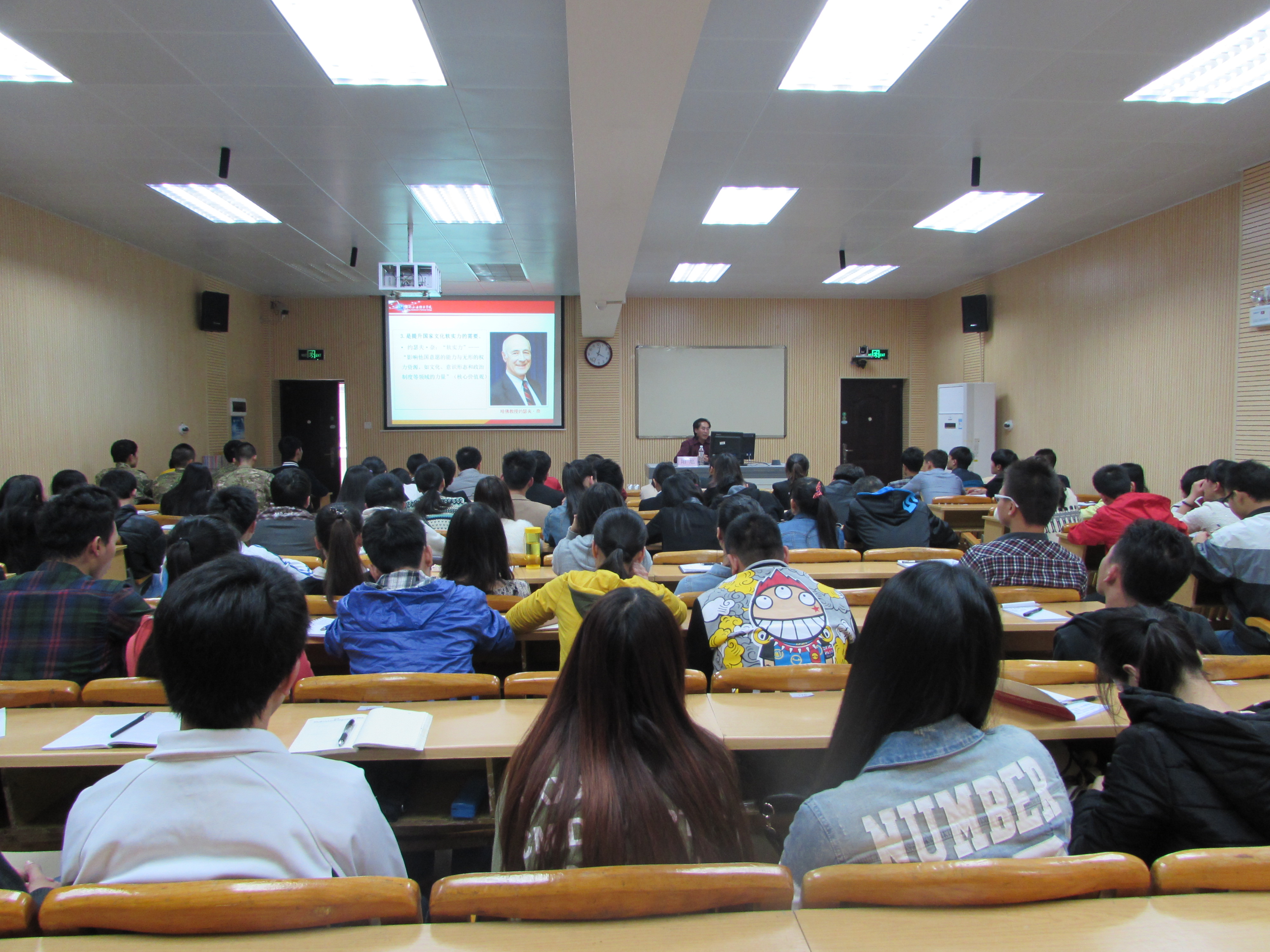 阳旭副书记以系列真实典型的正反案例为切入点,围绕社会主义核心价值观24个字的基本内容,从社会主义核心价值观的提出和形成、培育和践行社会主义核心价值观的重要性和迫切性、培育和践行社会主义核心价值观对实现中国梦的重要现实意义和深远历史意义等方面对社会主义核心价值观做了详实的梳理和阐释。结合大学生实际情况,详细描述了当前大学生存在的一些问题,深入分析广大青年学生的价值取向的发展历程,详细解读了如何培育和践行社会主义核心价值观以及为什么要培育和践行、怎么培育和践行。在谈到青年如何践行社会主义核心价值观时,阳书记用习近平五四讲话的内容,从“明辨、修德、善学、笃实”四个方面进行阐述,要求广大同学要将实现中国梦与实现大学梦紧密结合起来,学会做人、学会做事、学会合作、学会学习,扎实掌握知识技能,树立合作共赢思维方式和正确的价值观,规划好大学生活和职业发展,做学生中的楷模,争当同学中的模范。