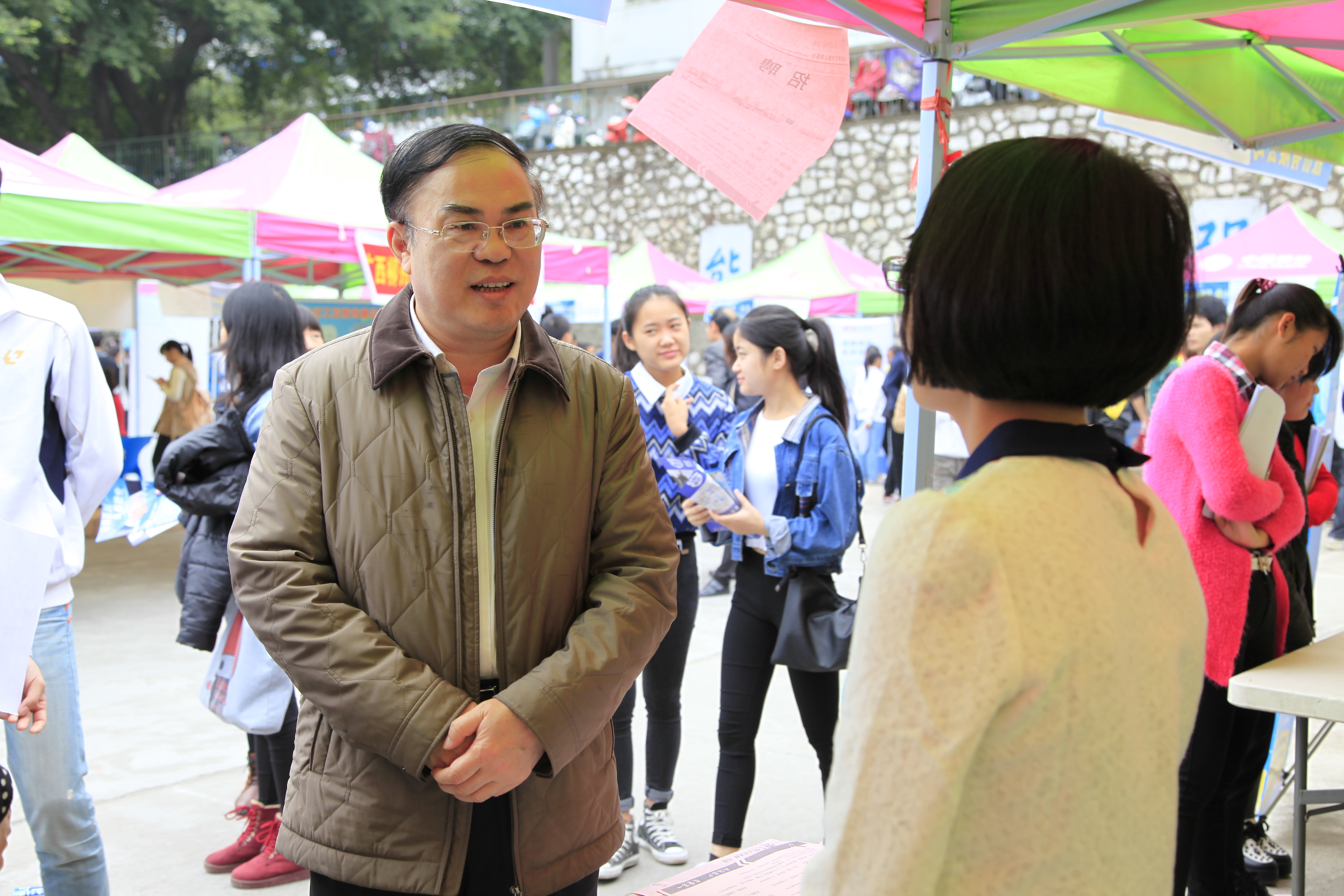 院长石令明到用人单位招聘点了解招聘情况