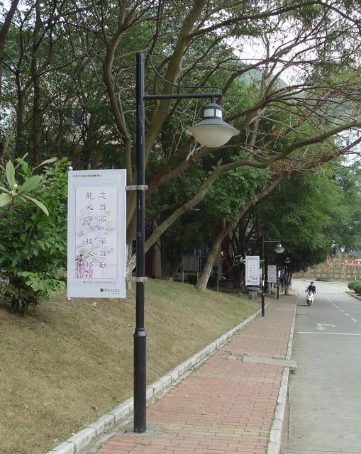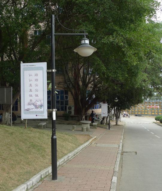天工楼往D区校门方向的灯杆旗