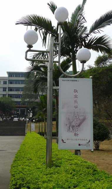 D区校门往天工楼方向的灯杆旗