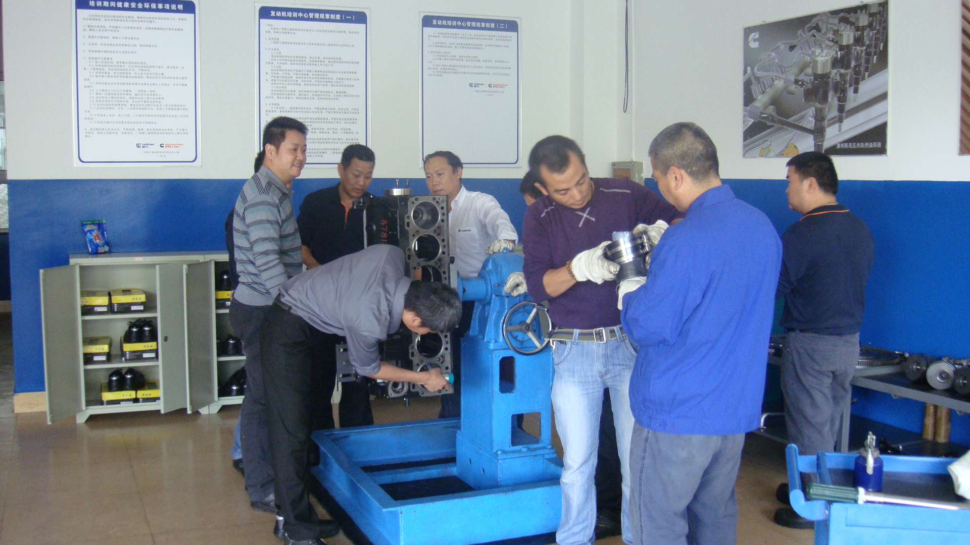 2013年4月,在校企合建的康明斯培训中心,柳工正在康明斯发动机实训基地对员工进行培训学习。