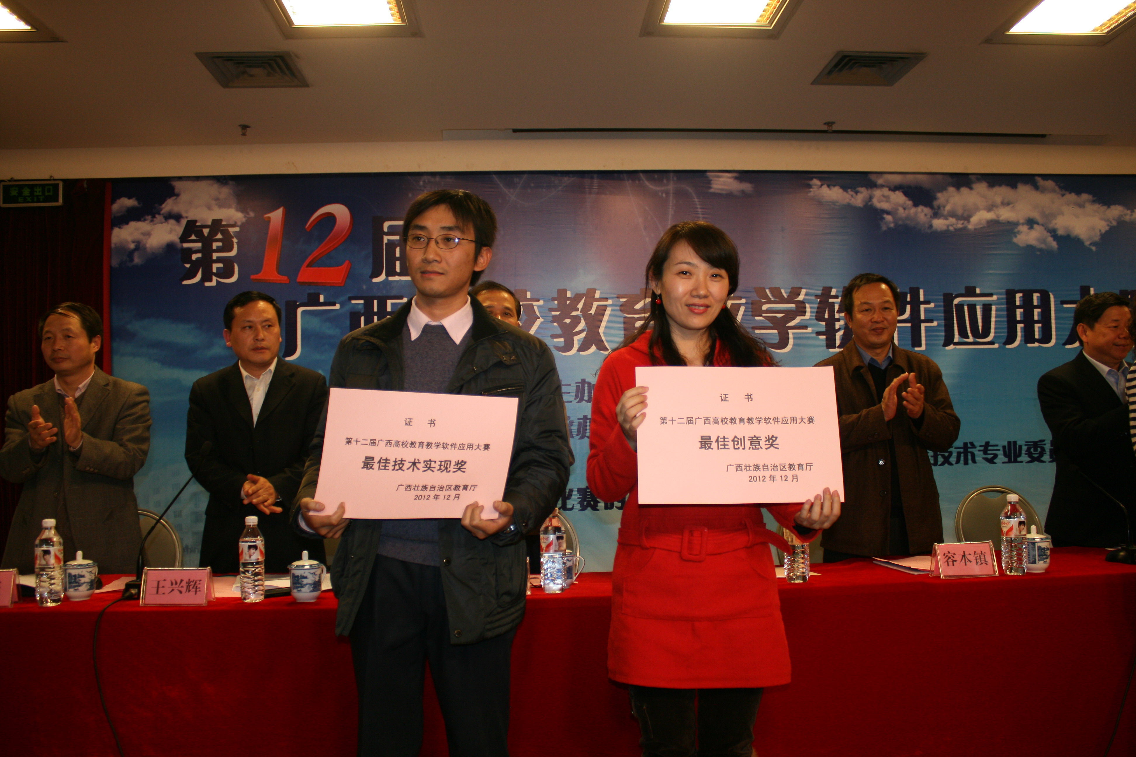 陈芳副主任(右)获广西高校第十二届教学软件应用大赛一等奖和最佳创意奖
