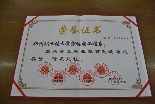 五年来,机电工程系在争创国内一流的过程中,曾先后获得了广西“教育系统先进集体”,并荣记二等功;柳州市“创先争优优秀示范点”、 广西高?!按聪日攀痉兜恪?、“全国职业教育先进单位”等荣誉称号。
