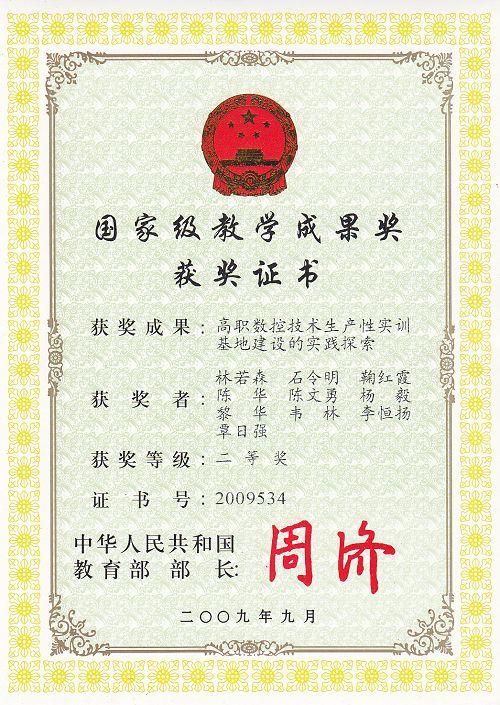 在专业建设及课程改革方面,《高职数控技术生产性实训基地建设的实践探索》荣获2009年广西区教学成果奖特等奖,第六届国家教学成果二等奖;《基于企业需求的高职校企合作理论研究与实践探索》荣获2014年职业教育国家级教学成果二等奖;《数控技术专业人才培养方案》和《机电设备维修与管理专业人才培养方案》荣获2011年全国机械职业教育教学成果一等奖;《零件数控铣削加工》荣获全国机械职业教育教学成果二等奖。2012年荣获广西区教学成果奖特等奖1项、二等奖2项、三等奖2项。