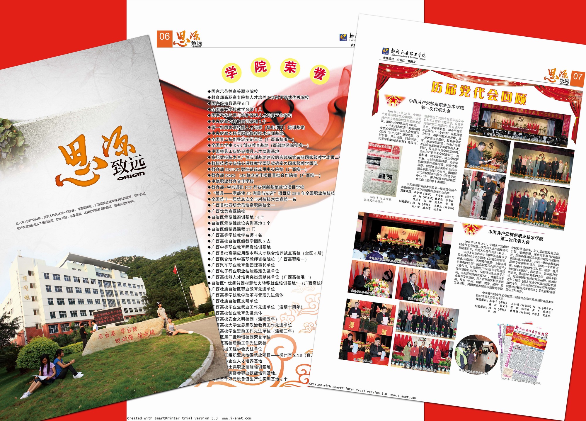 新闻网消息(记者石玉丹、左妮红 摄影 朱敬民)一本气势恢宏、设计精美还略带着些淡淡油墨香味的校报特刊,在中国共产党柳州职业技术学院第三次代表大会召开之际如约而至。全方位展示了学院5年来取得的各方面成就的48个版面,是为全院师生奉上的一次描述历史、描绘未来的视觉盛宴,更是为学院第三次党代会的召开献上的一份浓浓的厚礼!