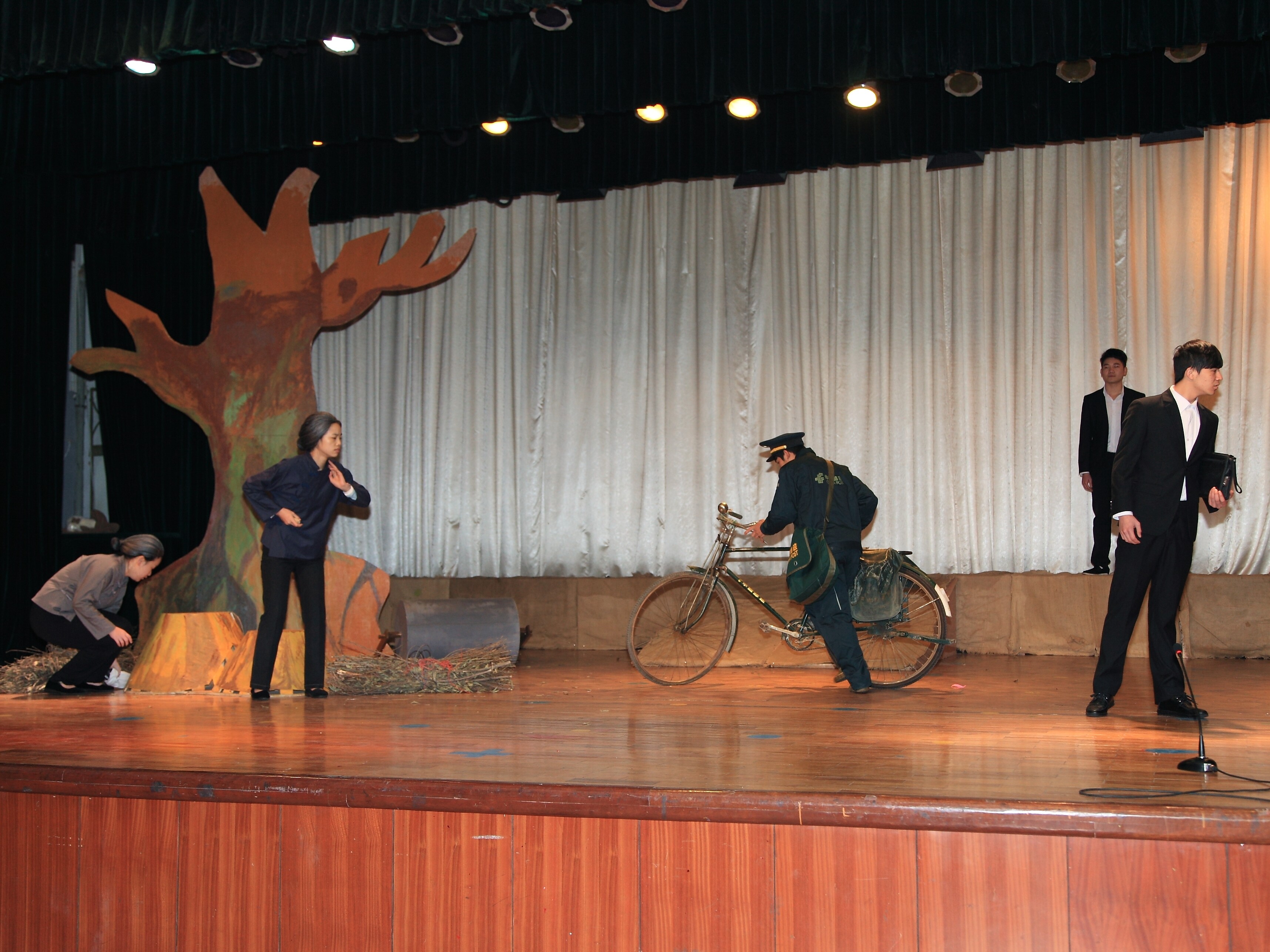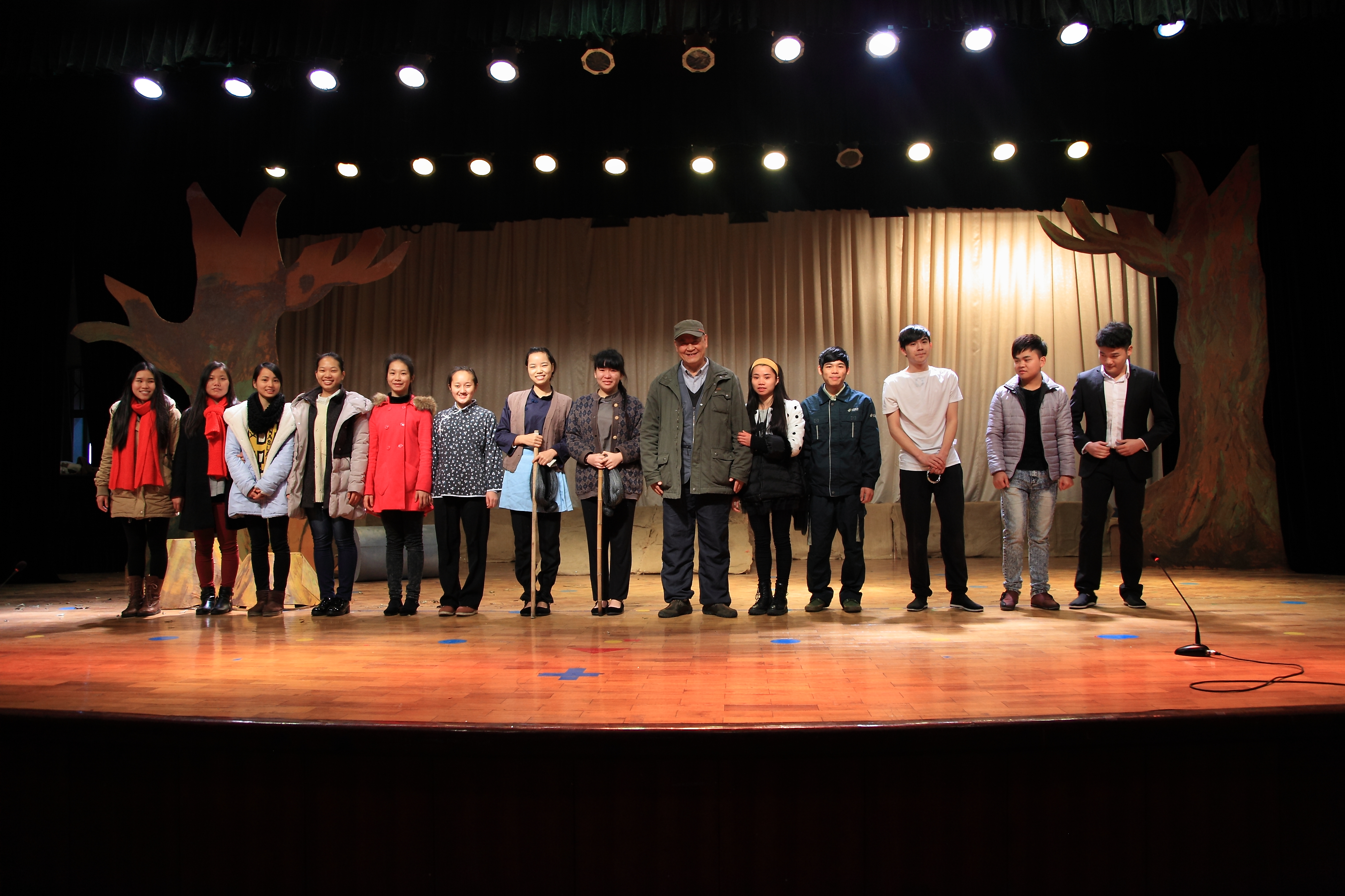 剧终指导老师雍和平(中)与参演学生出场谢幕