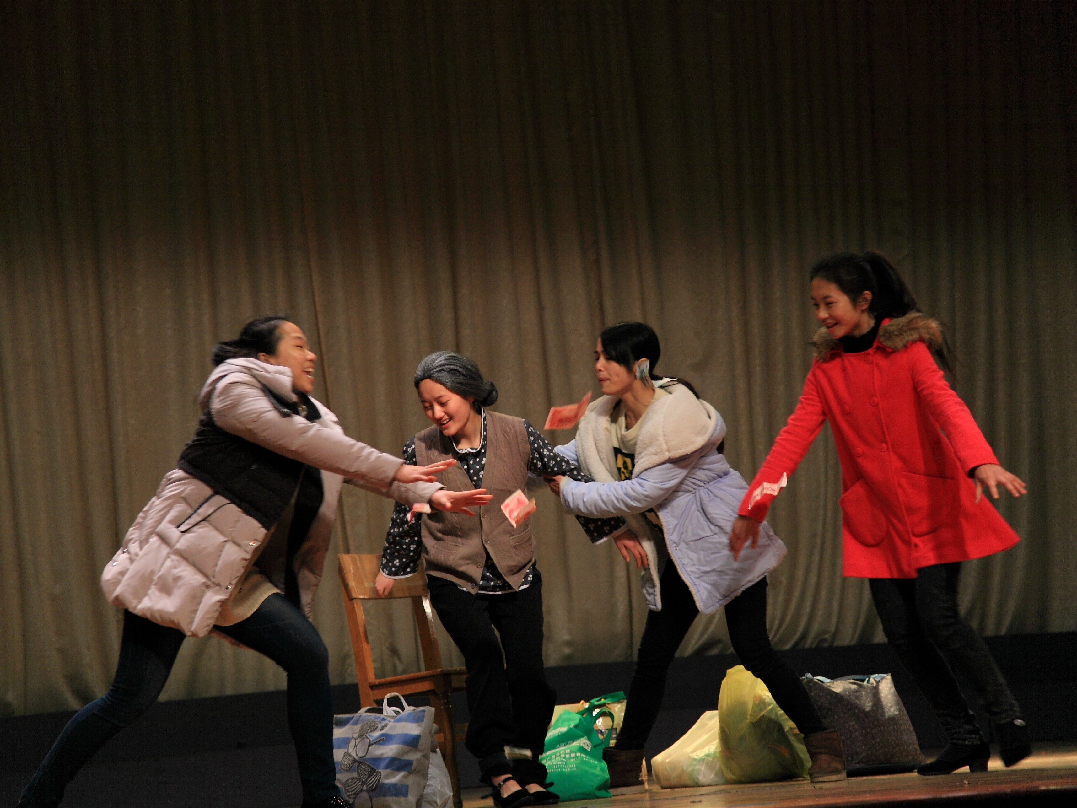 新闻网消息(记者 石玉丹 摄影 朱敬民)“你看,她真的流眼泪了?!薄暗比话?,要观众流眼泪,演员首先得流眼泪?!薄?015年1月12日上午,由我院艺术设计系着力打造的小品短剧《家有老母》演出到高潮时,两位观众的对话不期然飘进耳鼓。