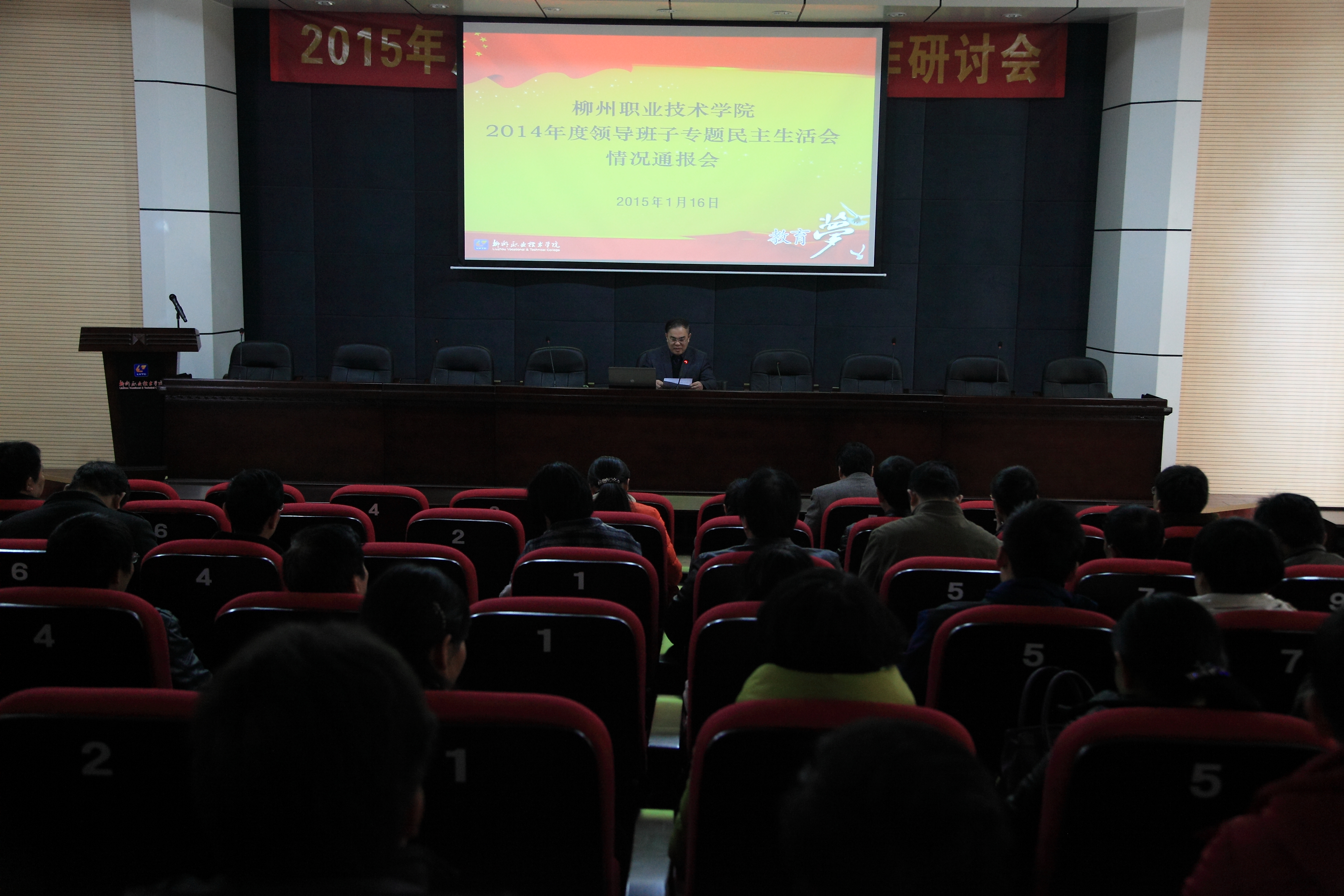 新闻网消息(通讯员 党委组织部 林爱鲜 摄影 朱敬民)1月16日上午,学院在行政楼100报告厅召开学院2014年领导班子专题民主生活会情况通报会。学院领导朱伟才、阳旭和全院中层正职干部以及各部门教职工代表参加了会议?;嵋橛傻澄笔榧茄粜裰鞒郑澄榧侵煳安磐ūㄗㄌ饷裰魃罨崆榭?。