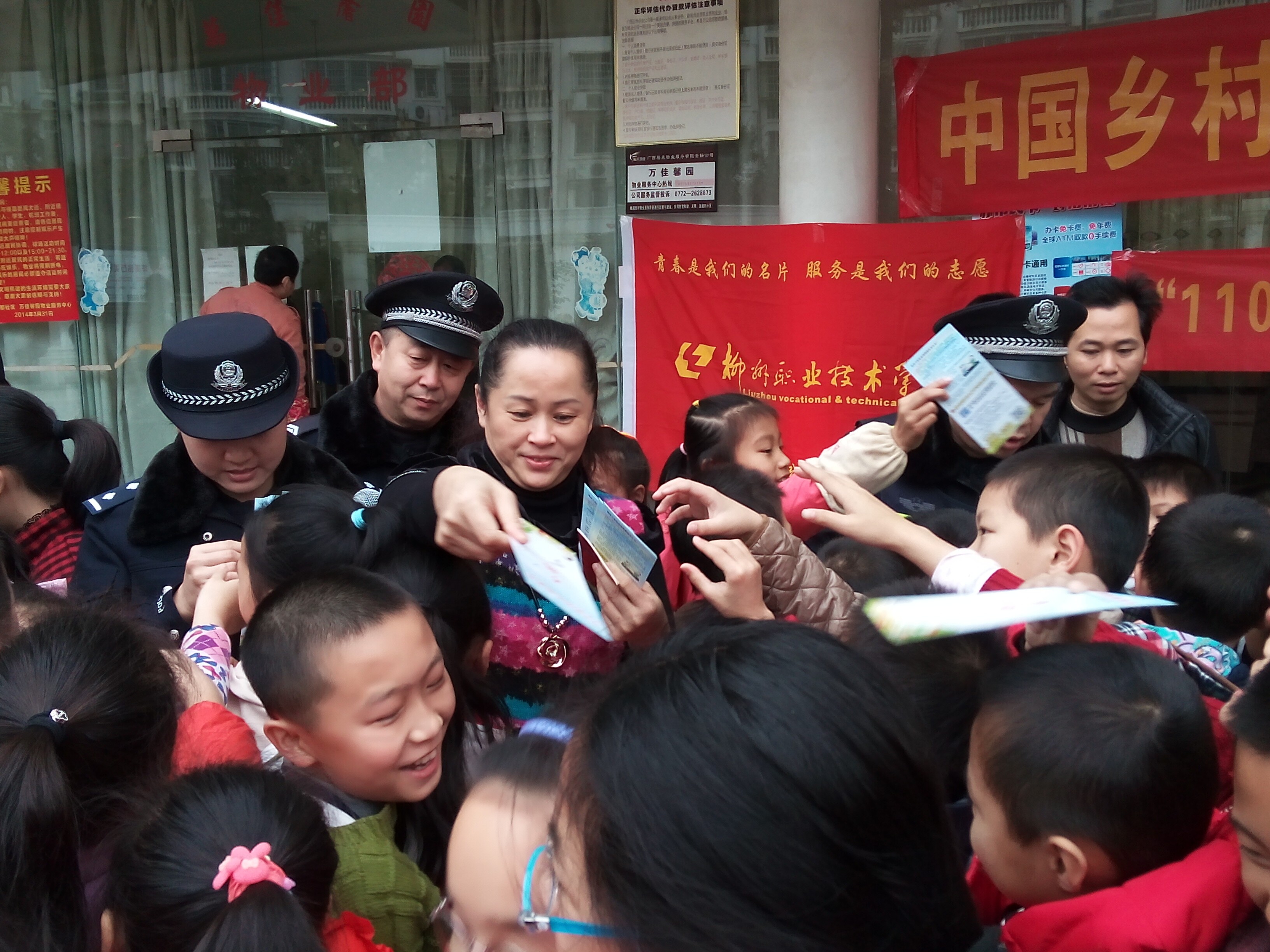 新闻网消息(通讯员/公共基础部 许明)2015年1月28日早上九点半,我院大学生KAB创业俱乐部志愿者携手柳州市公安局巡警支队潭西警务站、河西派出所民警,前往柳州市万佳馨园小区中心广场,向柳州市柳南区宏都社区的孩子们和群众开展“中国乡村儿童联合公益‘女童?;ぁ毕钅康亩佬郧趾逃?,警民共300人参加了此次活动。现场发放宣传手册200本,宣传折页100页,这也是“中国乡村儿童联合公益‘女童?;ぁ毕钅渴状谓肓萆缜够疃?。