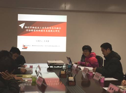 2015年1月30日上午,由柳州市科技局金永平科长、梁佐云副科长率领的柳州市科技开发项目申请评估小组,到我院针对申报项目“柳州市物流业工业化和信息化融合评估模型的构建及发展模式研究”进行专项评估。学院副院长林若森、科技开发处处长谭界忠、财经与物流管理系主任冯雪萍、广西中信国际物流有限公司副总经理梁科佳、项目负责人王浩澂以及项目组其他成员、科技开发处工作人员等参加了评估会。评估会上,项目负责人王浩澂就项目的研究现状、研究内容及解决的问题、研究思路、研究基础以及下一步打算等五个方面进行了系统的讲解与演示。柳州市科技局金永平科长对课题紧贴行业需求表示肯定,对项目组校企合作实力表示满意,并表明了柳州市政府大力支持现代服务业发展,支持产学研结合的立场。梁佐云副科长希望项目研究成果要能从理论层面升华,争取获得市发改委和市工信委的采纳,争取落实服务于柳州市物流行业。学院副院长林若森代表学院对科技局评估组的指导和肯定表示感谢,简述了这些年学院对科研项目的支持态度与力度,以及未来的一些工作动向,2015年学院将有更多的产学研项目等待科技局的指导。