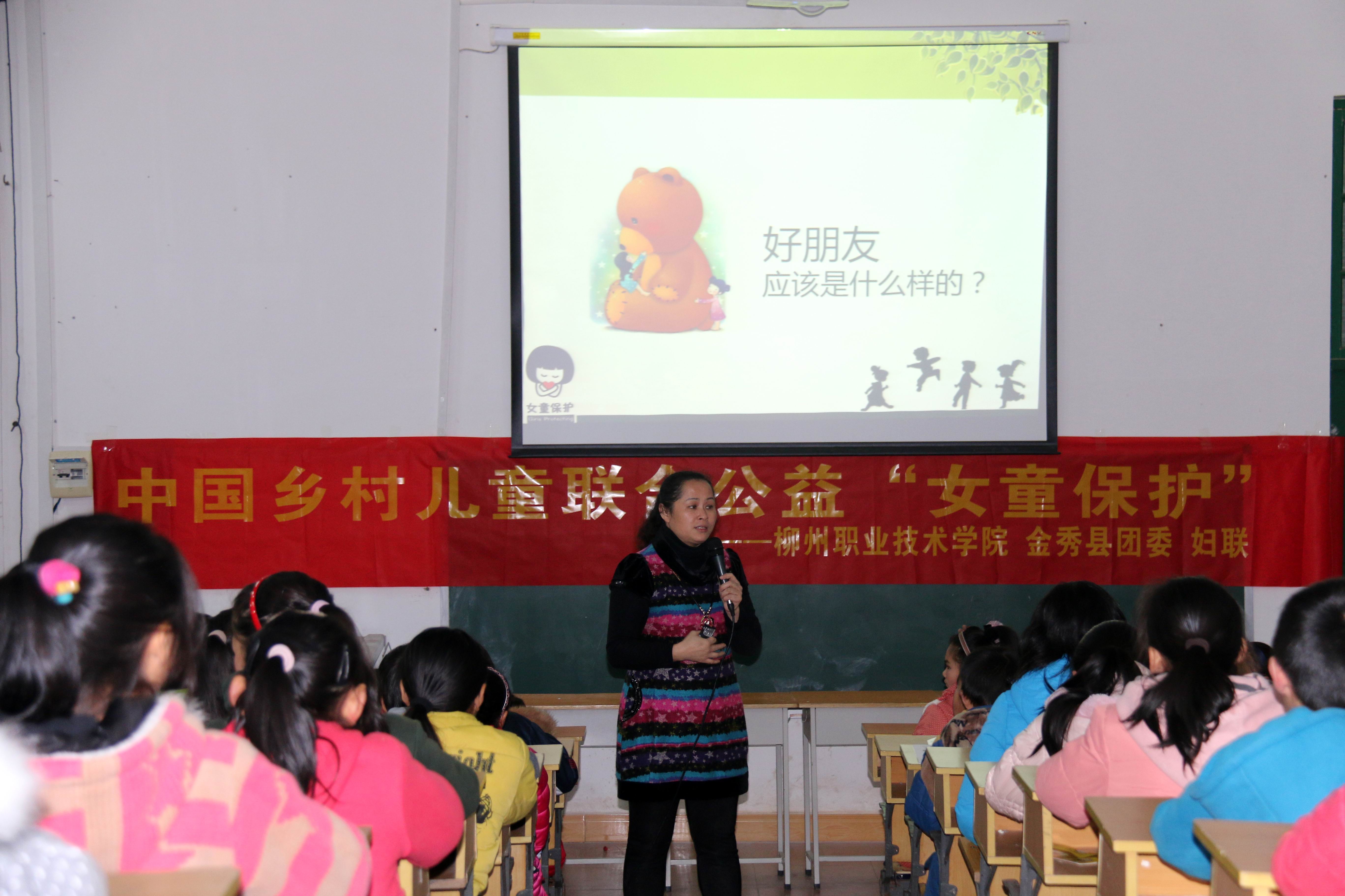 新闻网消息(通讯员 公共基础部 许明)为了增强孩子们的安全意识、提高防范能力,2015年2月3日,应金秀瑶族自治县团委和妇联的邀请,在团县委和金秀武警中队领导的陪同下,柳州职业技术学院“女童?;ぁ毕钅抗阄髦驹刚哐г焊痹撼ぞ虾煜冀淌?、公共基础部心理与就业教学团队负责人许明教授、保卫处副处长钟旭、环境与食品工程系副书记王静一行前往来宾市金秀县共和小学和民族小学开展儿童防性侵害知识宣传活动。