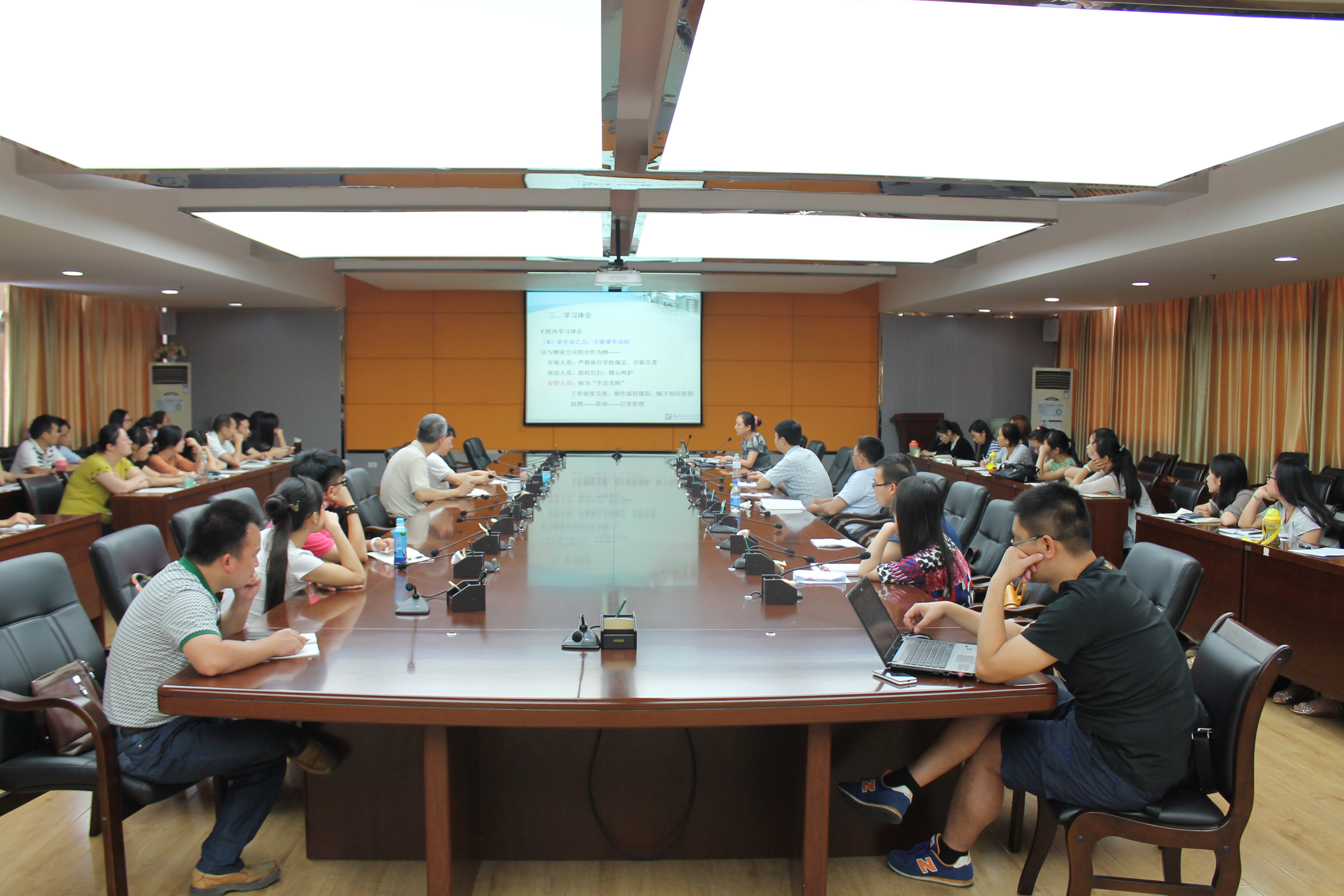 环境与食品工程系书记王静、汽车工程系唐艳老师结合她们在成都工业职业技工学校挂职以及在四川国际标榜职业学院、四川建筑职业学院学习的经验,介绍了上述三所学校在德育工作中的特色和亮点。其中,成都工业职业技工学校的“全纳教育”即不放弃、不歧视任何一个学生,让有差异的个体实现共同的发展、收获成功的理念给在座的辅导员很大的触动。
