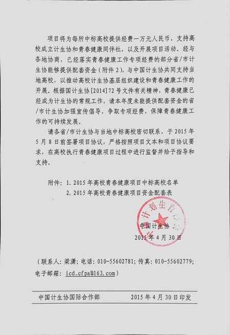 喜讯:我院成功获得中国计生协高校青春健康教育项目立项