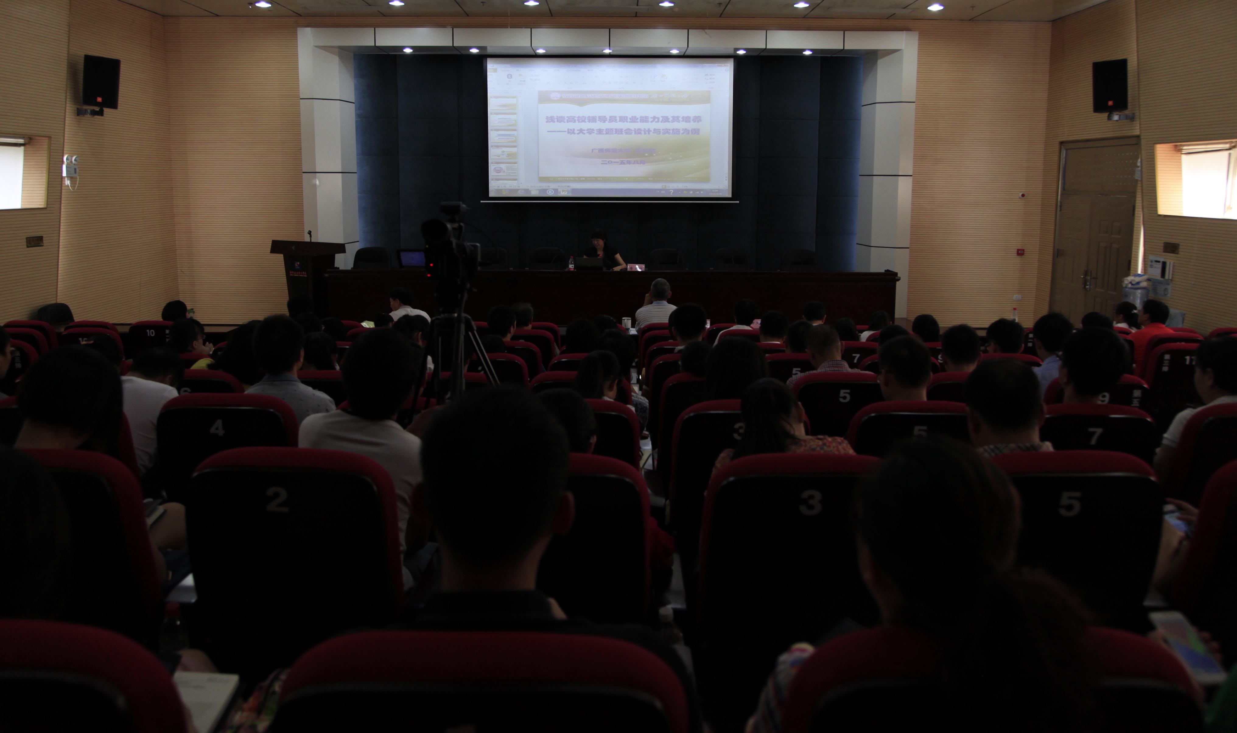 此次培训邀请到广西师范大学学生工作处处长唐文红教授做“浅谈高校辅导员职业能力及其培养 ”的专题讲座。唐教授从管理学能力本位视角、心理学视角、马克思主义人学理论视角三个方面阐述了辅导员职业能力的界定,并分析了辅导员教育语言表达能力和教学语言表达能力这两个职业核心能力的表现形式和要求,说明大学生主题班会是辅导员核心能力的集中表现,并介绍了广西师范大学主题班会制度管理体系的构建和实施方法,并通过展示和点评优秀主题班会视频,教给大家如何策划大学生主题班会的基本方法。唐教授具有丰富的学生工作经验,她从自身工作心得出发,以清晰的逻辑、简洁的语言、大量的工作实例呈现了一场精彩的讲座,使广大辅导员老师们受益匪浅。 -