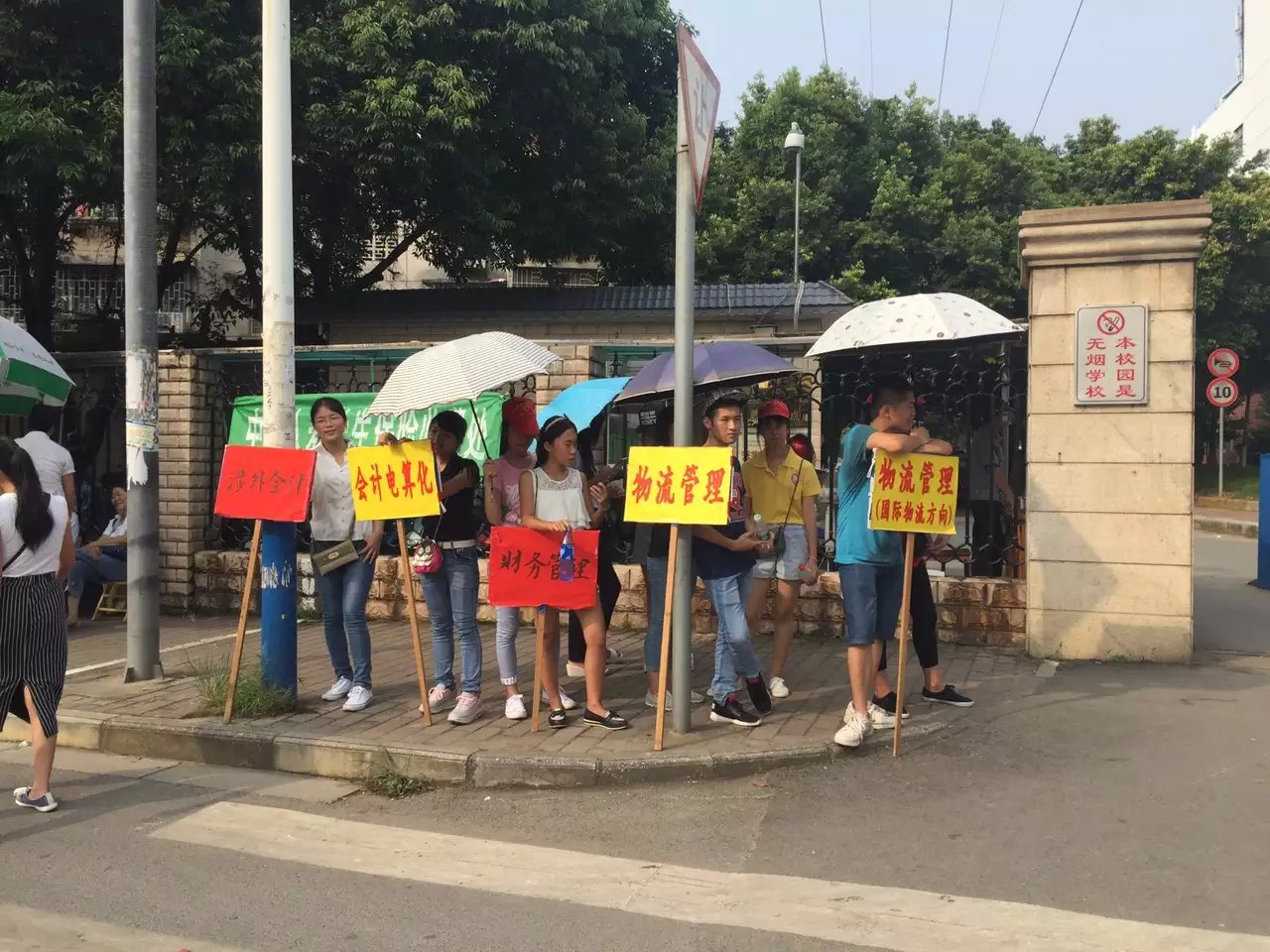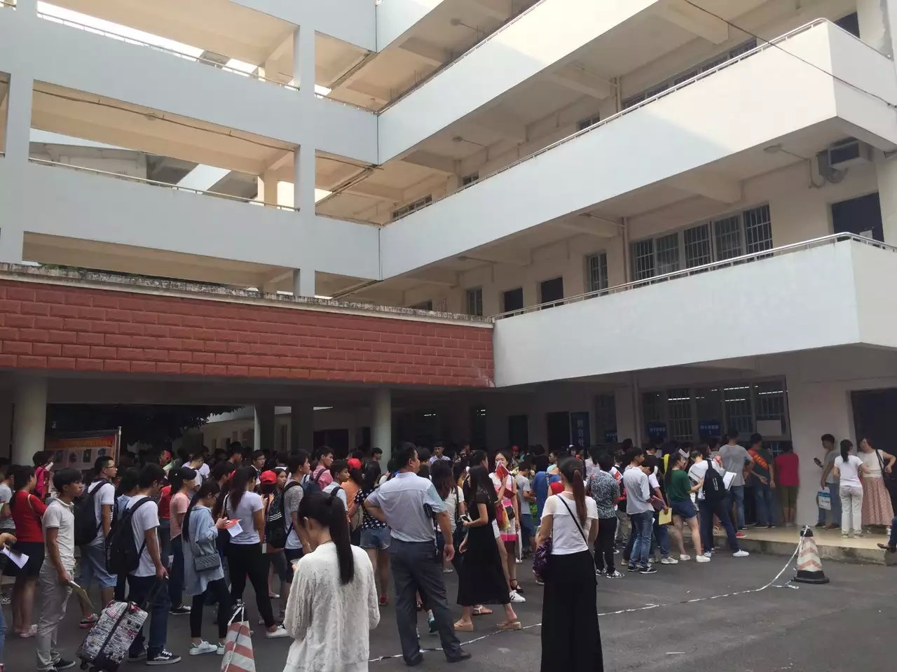 来自四川的电子工程信息系2013级学生李钒正在帮一位从贵港来的学弟看行李,他今年11月份就要去实习了,然后要到明年的夏天再回到学校领毕业证?!熬鸵弦盗耍芄话镅W龆嗌偈戮妥龆嗌龠拢∽约旱囊环萘?。”一位站在校门口的汽车工程系志愿者被37度的高温和酷热的太阳晒得汗流浃背,“拧出的汗水都可以养鱼了”的打趣说法映衬出迎新服务工作的辛苦。11日,超过500名志愿者顶着烈日投入到了当天的迎新服务活动当中。