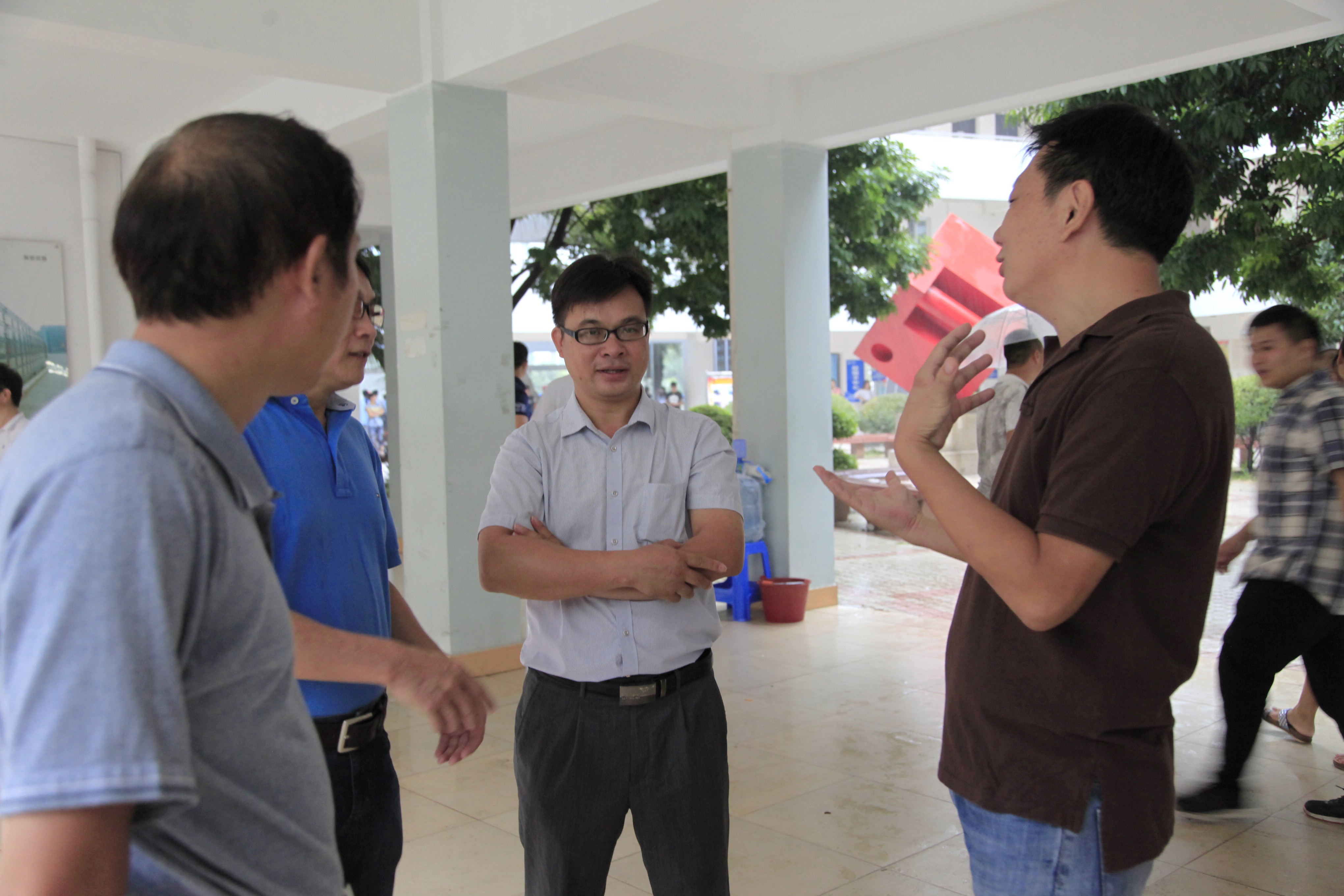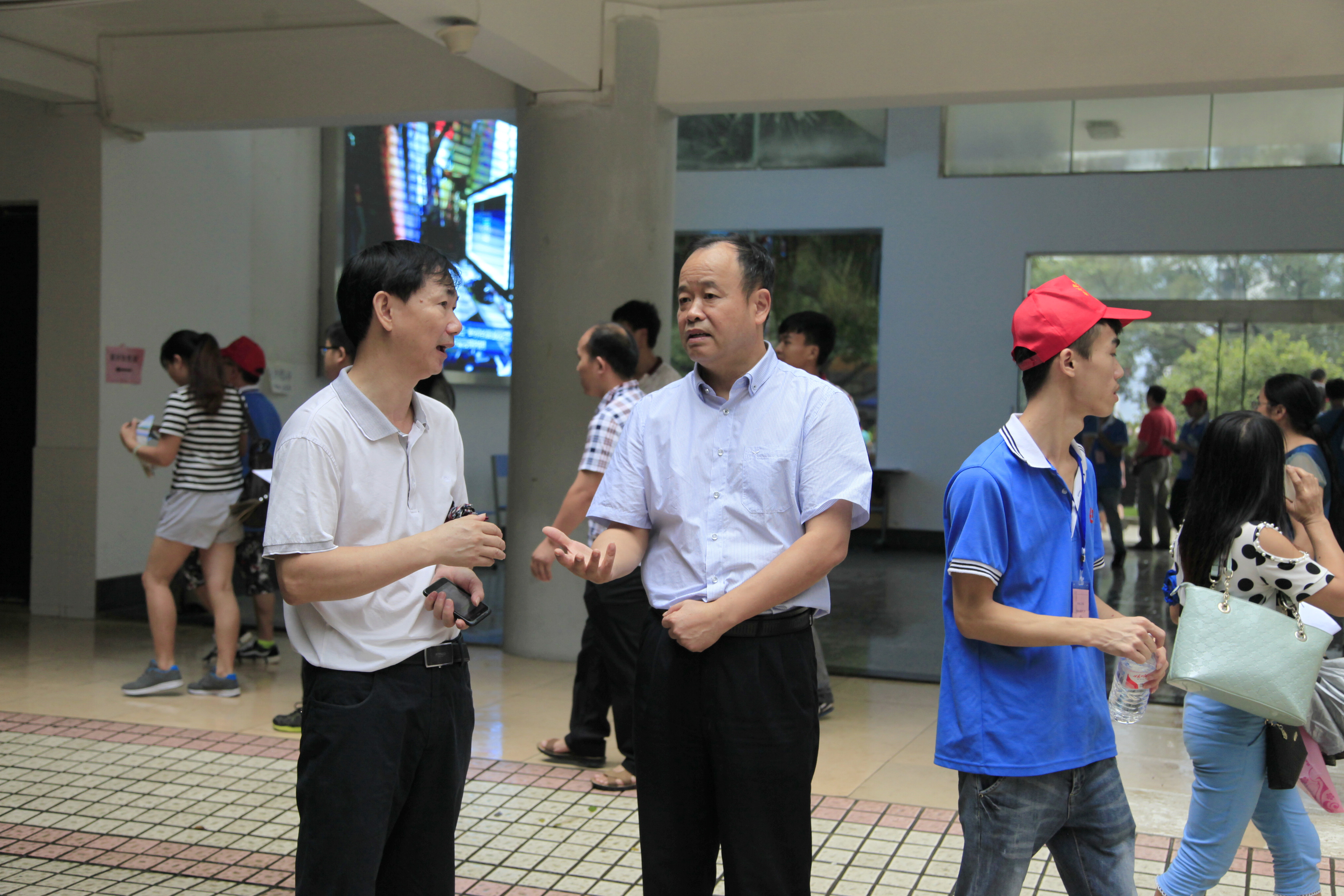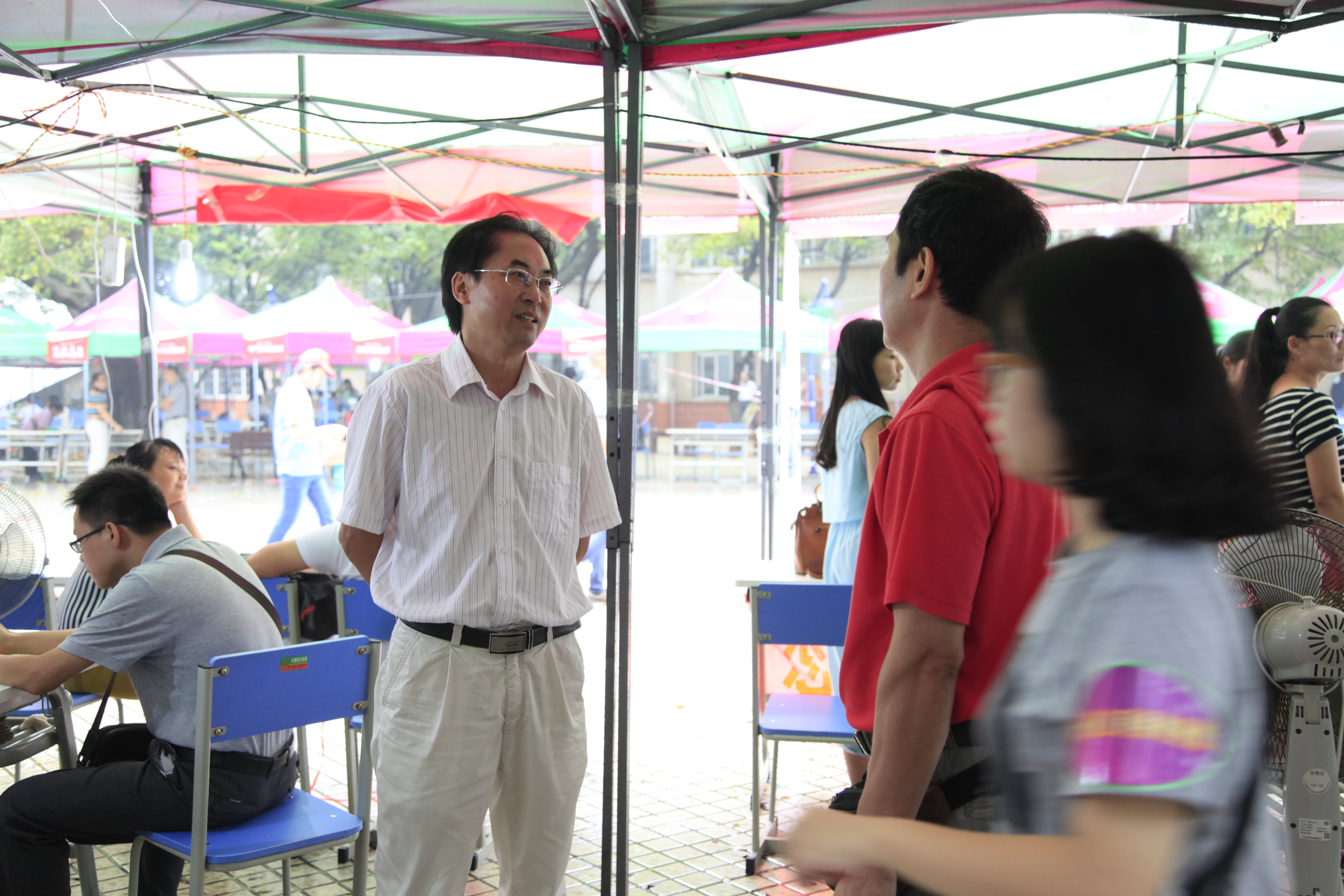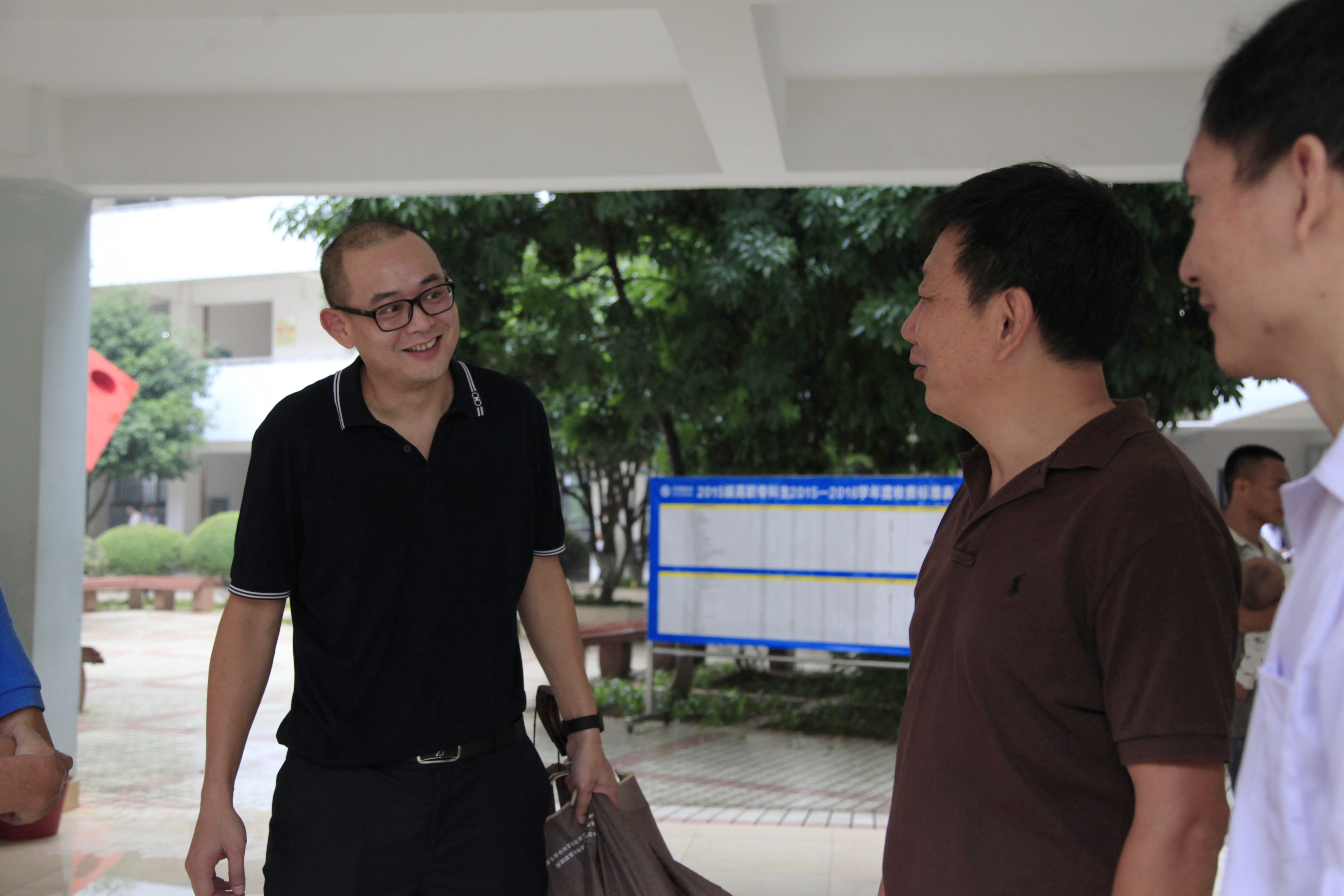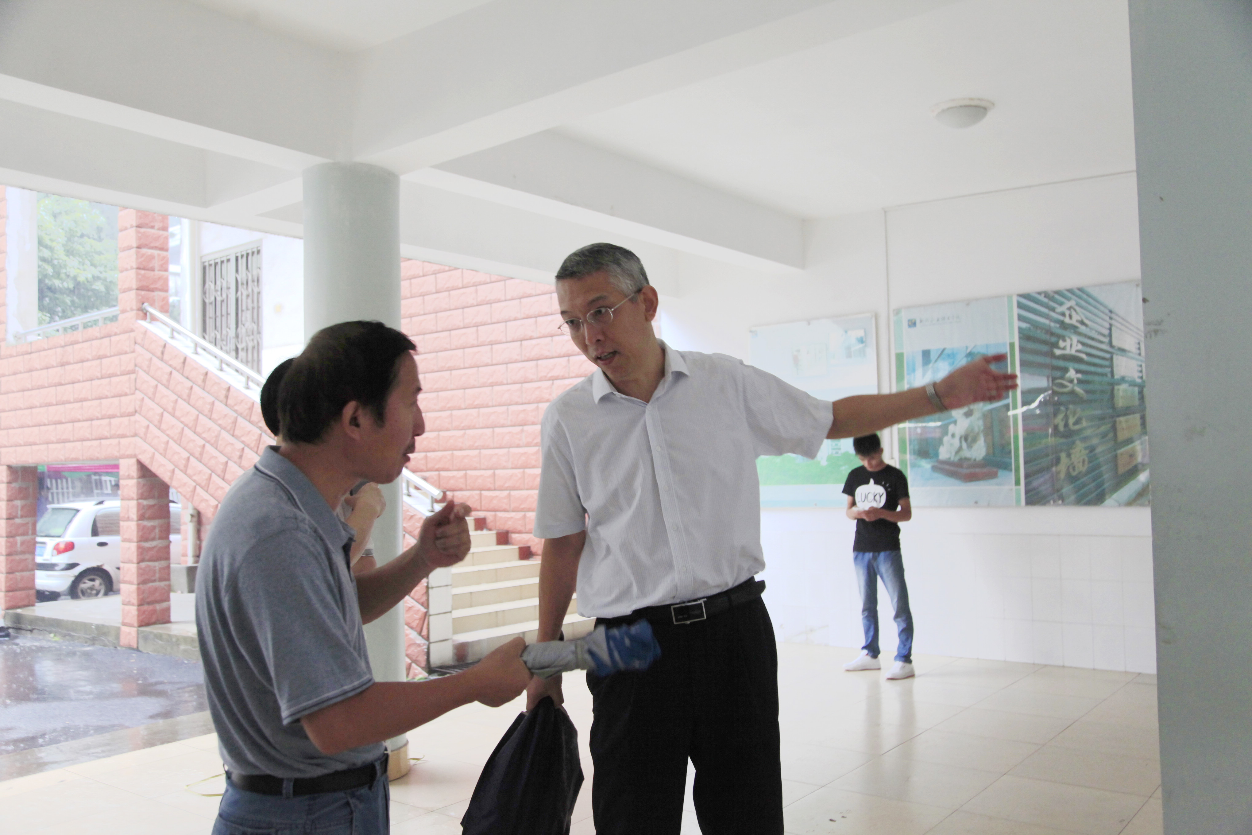 12日上午9:40,骤雨初歇。院长石令明来到迎新现场,询问新生的报到进展情况,强调迎新工作要考虑周全,做好预案,以应付难以预料的突发情况。石院长还对迎新工作提出要求。阳旭、杨毅、林若森、瞿凡、冉福松等学校领导都相继到现场指导,了解、过问新生报到情况,鼓励大家要克服恶劣天气带来的困难,尽最大努力做好迎新服务工作。