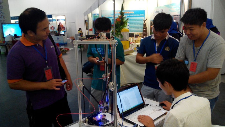 “激光雕刻与快速成型机”是学生科技创新原创作品,由电子信息工程系蒙飚、杨贤军两位老师指导,电子信息工程系三名学生张晋华、贝晓娜、李燕等组成的创新团队完成。作品具备通过3D打印技术进行快速成型功能,在3D打印技术基础上,通过搭载激光管、普通水性笔而实现激光雕刻打印、绘画写字的功能。