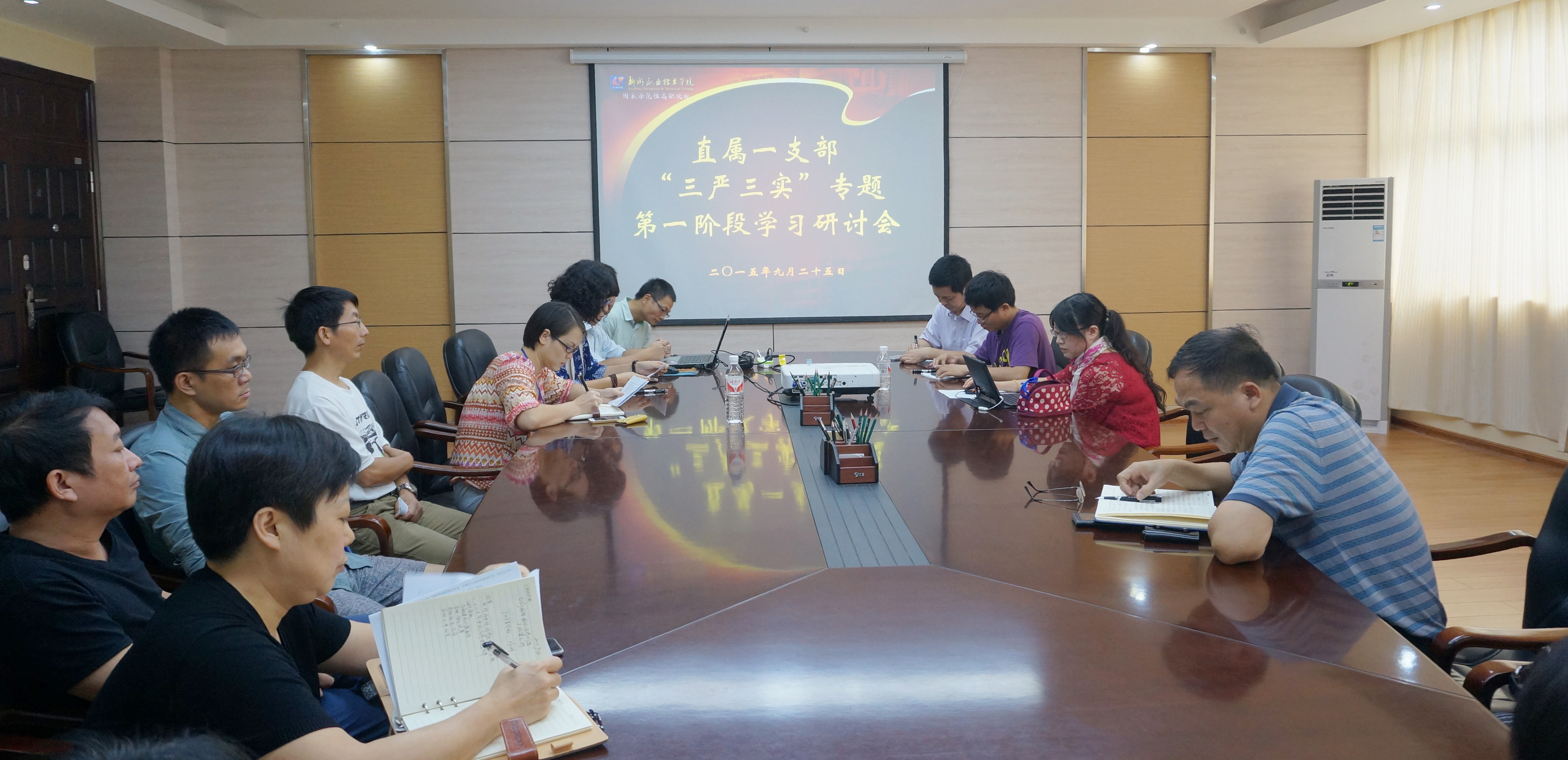 新闻网消息(通讯员 科研处 陈秋娜 图/宣传部 朱敬民、蒙俊江)为了扎实深入开展“三严三实”专题教育学习,根据学院党委组织部总体安排,9月25日上午,直属一支部在行政办公楼305会议室开展了“三严三实”专题第一阶段学习研讨会。该支部所在部门——党委办公室、党委宣传部和科技开发处的全体中层领导干部及支部全体党员同志参加了学习研讨会,会议由支部书记崔智慧主持。
