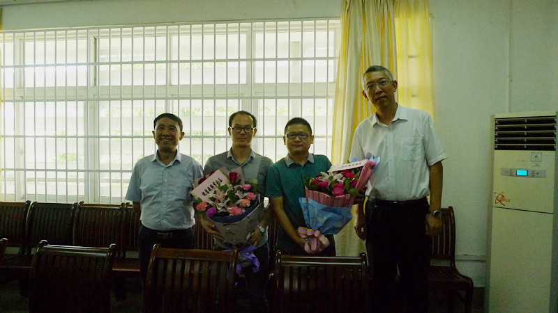 杨副院长慰问柳州市拔尖人才向小汉(右二)和柳州市优秀辅导员韦伟(右三)