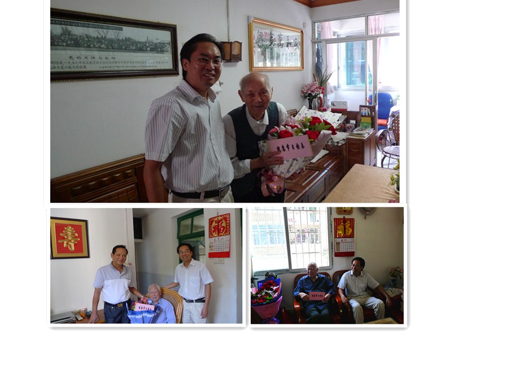 阳副书记慰问离退休教师代表(上右姜新埏、下中白崇林、下左张济民)