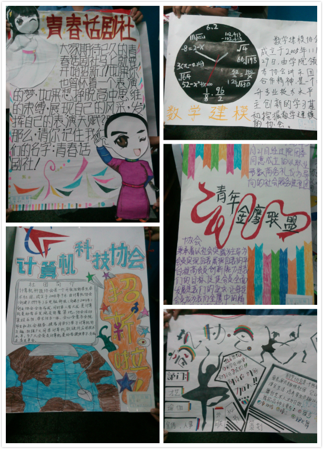 部分社团的招新海报充满青春的气息
