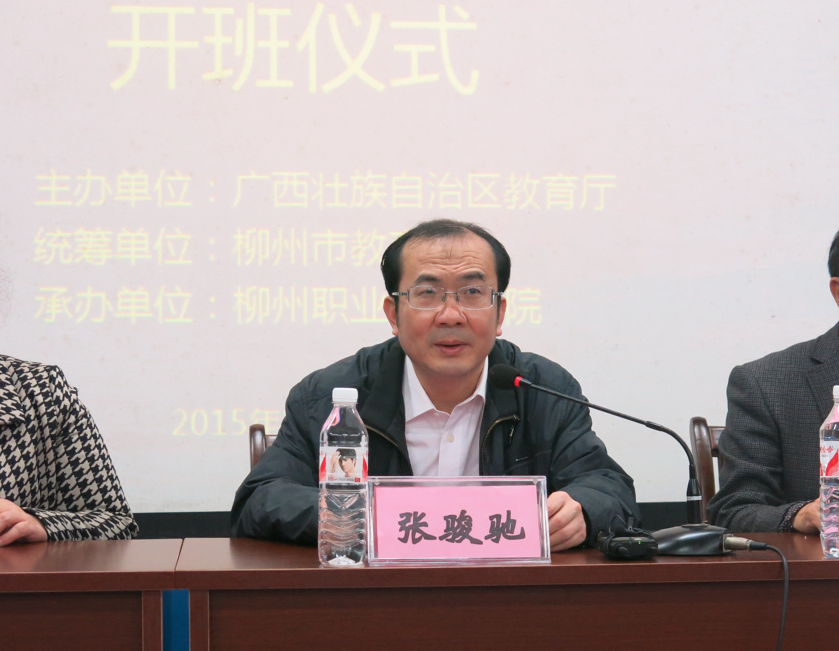 新闻网消息(通讯员/公共基础部 黄艳华 摄影/公共基础部 黄志卫)11月17日上午,我院在思贤楼101室举行了2015年“区培计划”——三江县初中数学骨干教师培训班开班仪式,柳州市教育局党委书记张骏驰、我院副院长林若森、继续教育中心主任黎刚、公共基础部主任姜献生、三江县教育局人事专干杨柳青及柳州市教育局、学院相关部门领导和老师及全体学员参加了开班仪式,仪式由姜献生主任主持。
